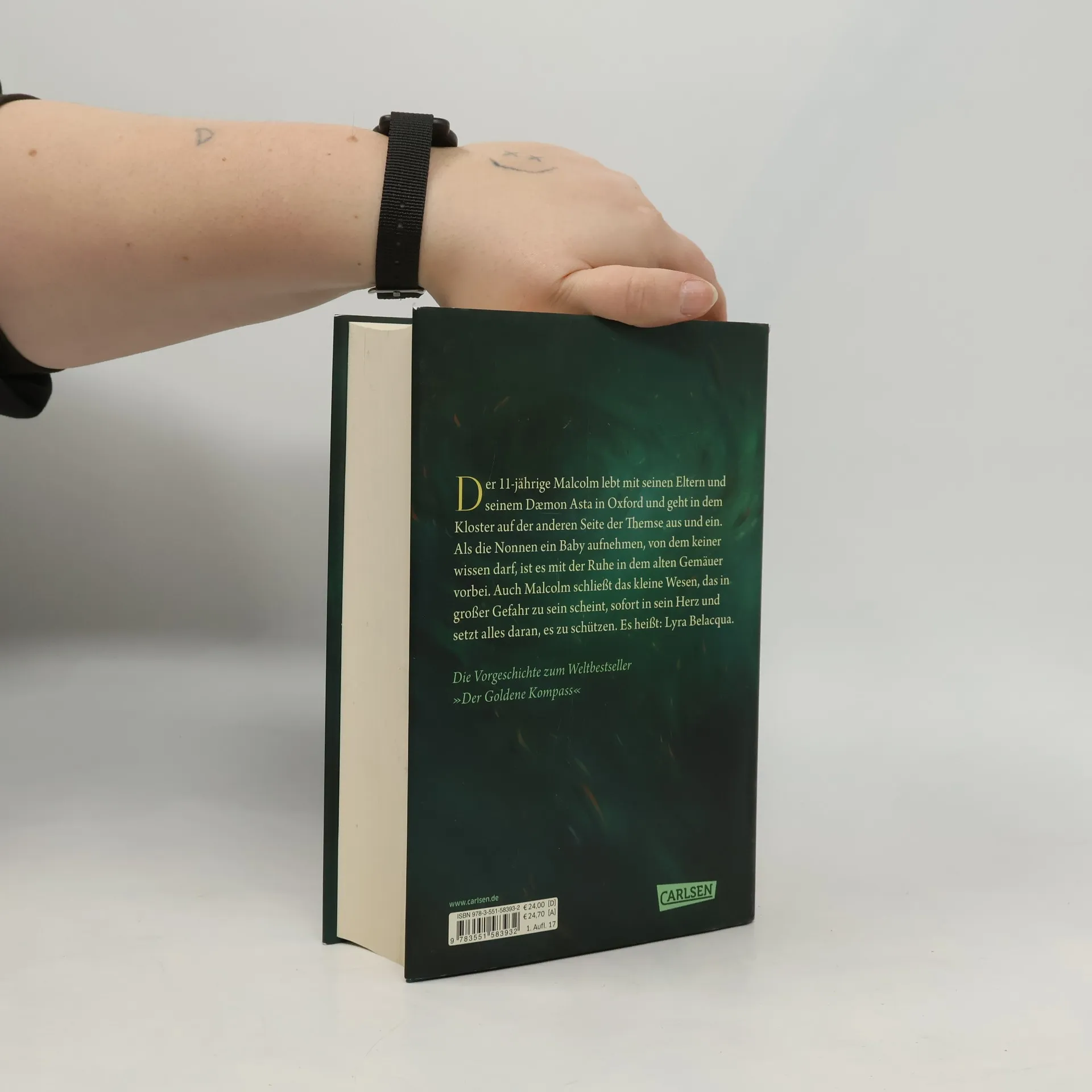 Der 11-jährige Malcolm lebt mit seinen Eltern und seinem Dæmon Asta in Oxford und geht in dem Kloster auf der anderen Seite der Themse aus und ein. Als die Nonnen ein Baby aufnehmen, von dem keiner wissen darf, ist es mit der Ruhe in dem alten Gemäuer vorbei. Auch Malcolm schließt das kleine Wesen, das in großer Gefahr zu sein scheint, sofort in sein Herz und setzt alles daran, es zu schützen. Es heißt: Lyra Belacqua. Die Vorgeschichte des Weltbestsellers »Der Goldene Kompass«. Alle Bände der unvergleichlichen Fantasy-Serie »His Dark Materials«: Über den wilden Fluss (Band 0) Der Goldene Kompass (Band 1) Das Magische Messer (Band 2) Das Bernstein-Teleskop (Band 3) Ans andere Ende der Welt (Band 4)