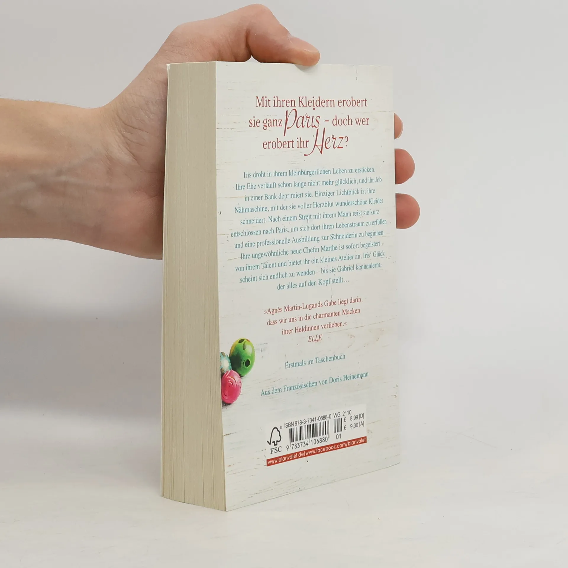 Mit ihren Kleidern erobert sie ganz Paris – doch wer erobert ihr Herz? Iris droht in ihrem kleinbürgerlichen Leben zu ersticken. Ihre Ehe verläuft schon lange nicht mehr glücklich, und ihr Job in einer Bank deprimiert sie. Einziger Lichtblick ist ihre Nähmaschine, mit der sie voller Herzblut wunderschöne Kleider schneidert. Nach einem Streit mit ihrem Mann reist sie kurz entschlossen nach Paris, um sich dort ihren Lebenstraum zu erfüllen und eine professionelle Ausbildung zur Schneiderin zu beginnen. Ihre ungewöhnliche neue Chefin Marthe ist sofort begeistert von ihrem Talent und bietet ihr ein kleines Atelier an. Iris' Glück scheint sich endlich zu wenden – bis sie Gabriel kennenlernt, der alles auf den Kopf stellt …