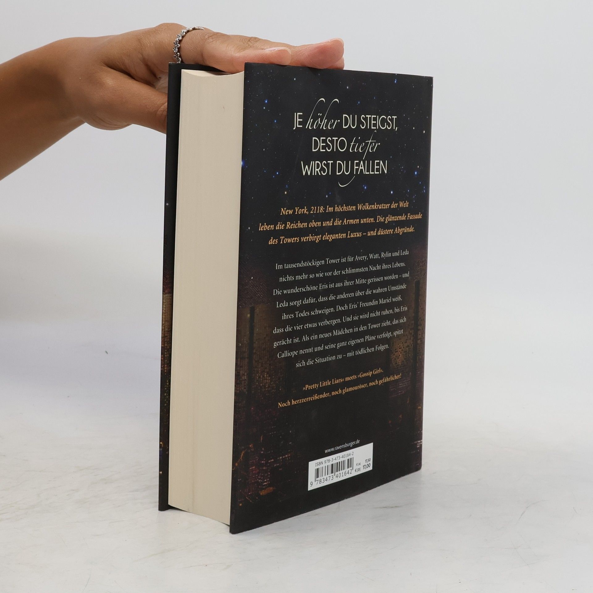 Nach den tragischen Ereignissen auf dem Dach des Towers ist nichts mehr wie es war. Leda, Avery, Watt und Rylin haben sich geschworen, über die Nacht zu schweigen und das schreckliche Geheimnis um jeden Preis zu wahren. Nun tun sie alles, um möglichst normal weiterzuleben, doch das ist nicht so einfach: Avery und ihr Adoptivbruder Atlas dürfen nicht zusammen sein, denn ihre verbotene Liebe droht die Familie zu zerstören. Und es wird mit jedem Tag schwieriger, ihren Eltern etwas vorzumachen. Rylin erhält ein Stipendium für die elitäre Berkeley Academy in den oberen Etagen. Doch nun kann sie dem Jungen, dessen Herz sie gebrochen hat, nicht mehr aus dem Weg gehen. Leda versucht verzweifelt, ihr Leben wieder in den Griff zu bekommen – und den Erinnerungen an jene furchtbare Nacht zu entfliehen. Watt hadert mit verwirrenden Gefühlen für ein Mädchen, das er bis in alle Ewigkeit hassen wollte, und lässt sich auf ein gefährliches Spiel ein. Und Mariel will nur eins: Rache. Als die mysteriöse Calliope in den Tower zieht und sich zielstrebig ihren Platz in der reichen Gesellschaft sucht, droht das Netz aus Lügen zu zerreißen …