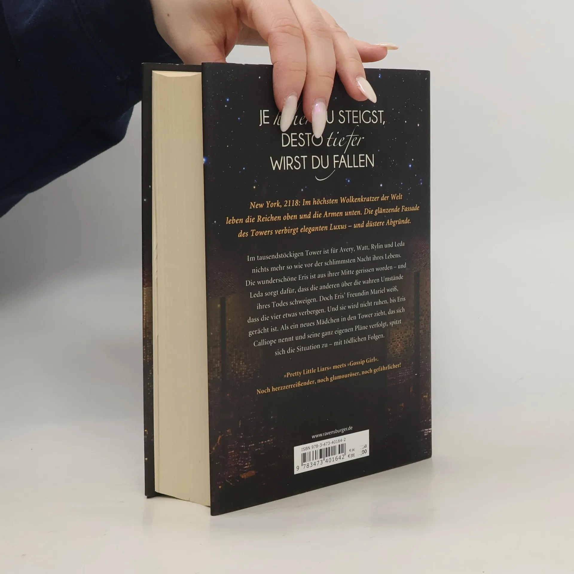 Nach den tragischen Ereignissen auf dem Dach des Towers ist nichts mehr wie es war. Leda, Avery, Watt und Rylin haben sich geschworen, über die Nacht zu schweigen und das schreckliche Geheimnis um jeden Preis zu wahren. Nun tun sie alles, um möglichst normal weiterzuleben, doch das ist nicht so einfach: Avery und ihr Adoptivbruder Atlas dürfen nicht zusammen sein, denn ihre verbotene Liebe droht die Familie zu zerstören. Und es wird mit jedem Tag schwieriger, ihren Eltern etwas vorzumachen. Rylin erhält ein Stipendium für die elitäre Berkeley Academy in den oberen Etagen. Doch nun kann sie dem Jungen, dessen Herz sie gebrochen hat, nicht mehr aus dem Weg gehen. Leda versucht verzweifelt, ihr Leben wieder in den Griff zu bekommen – und den Erinnerungen an jene furchtbare Nacht zu entfliehen. Watt hadert mit verwirrenden Gefühlen für ein Mädchen, das er bis in alle Ewigkeit hassen wollte, und lässt sich auf ein gefährliches Spiel ein. Und Mariel will nur eins: Rache. Als die mysteriöse Calliope in den Tower zieht und sich zielstrebig ihren Platz in der reichen Gesellschaft sucht, droht das Netz aus Lügen zu zerreißen …