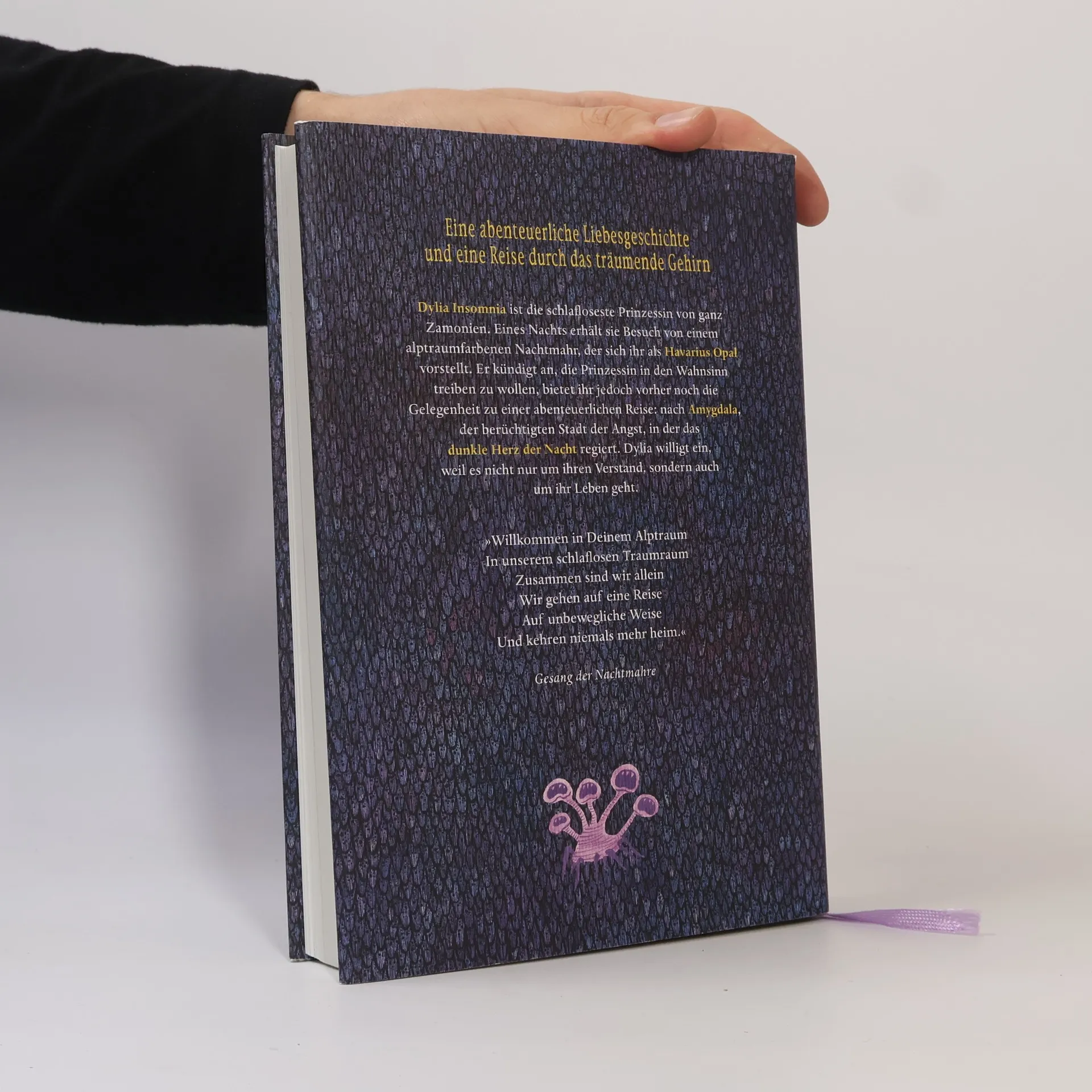 Eine traumhafte Liebesgeschichte und eine Reise durch das menschliche Gehirn als rasantes zamonisches Abenteuer Prinzessin Dylia, die sich selbst „Prinzessin Insomnia“ nennt, ist die schlafloseste Prinzessin von ganz Zamonien. Eines Nachts erhält sie Besuch von einem alptraumfarbenen Nachtmahr. Havarius Opal, wie sich der ebenso beängstigende wie sympathische Gnom vorstellt, kündigt an, die Prinzessin in den Wahnsinn treiben zu wollen. Vorher nimmt er die Prinzessin aber noch mit auf eine abenteuerliche Reise durch die Welt des Denkens und Träumens, die für beide immer neue und überraschende Wendungen bereit hält, bis sie schließlich zum dunklen Herz der Nacht gelangen. Walter Moers erzählt dieses Märchen aus der zamonischen Spätromantik voller skurriler Charaktere mit der ihm eigenen Komik: spannend und anrührend zugleich.