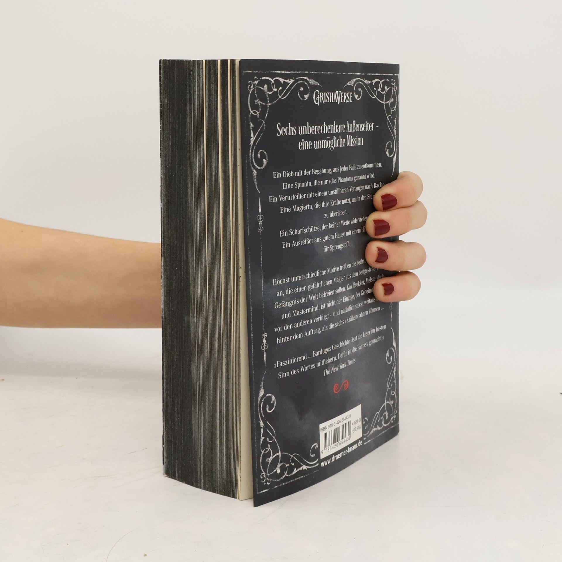 Ein Dieb mit der Begabung, aus jeder Falle zu entkommen. Eine Spionin, die nur »das Phantom« genannt wird. Ein Verurteilter mit einem unstillbaren Verlangen nach Rache. Eine Magierin, die ihre Kräfte nutzt, um in den Slums zu überleben. Ein Scharfschütze, der keiner Wette widerstehen kann. Ein Ausreißer aus gutem Hause mit einem Händchen für Sprengstoff. Höchst unterschiedliche Motive trieben die sechs Außenseiter an, die einen gefährlichen Magier aus dem bestgesicherten Gefängnis der Welt befreien sollen. Kaz Brekker, Meisterdieb und Mastermind, ist nicht der Einzige, der Geheimnisse vor den anderen verbirgt - und natürlich steckt weitaus mehr hinter dem Auftrag, als die sechs »Krähen« ahnen können...