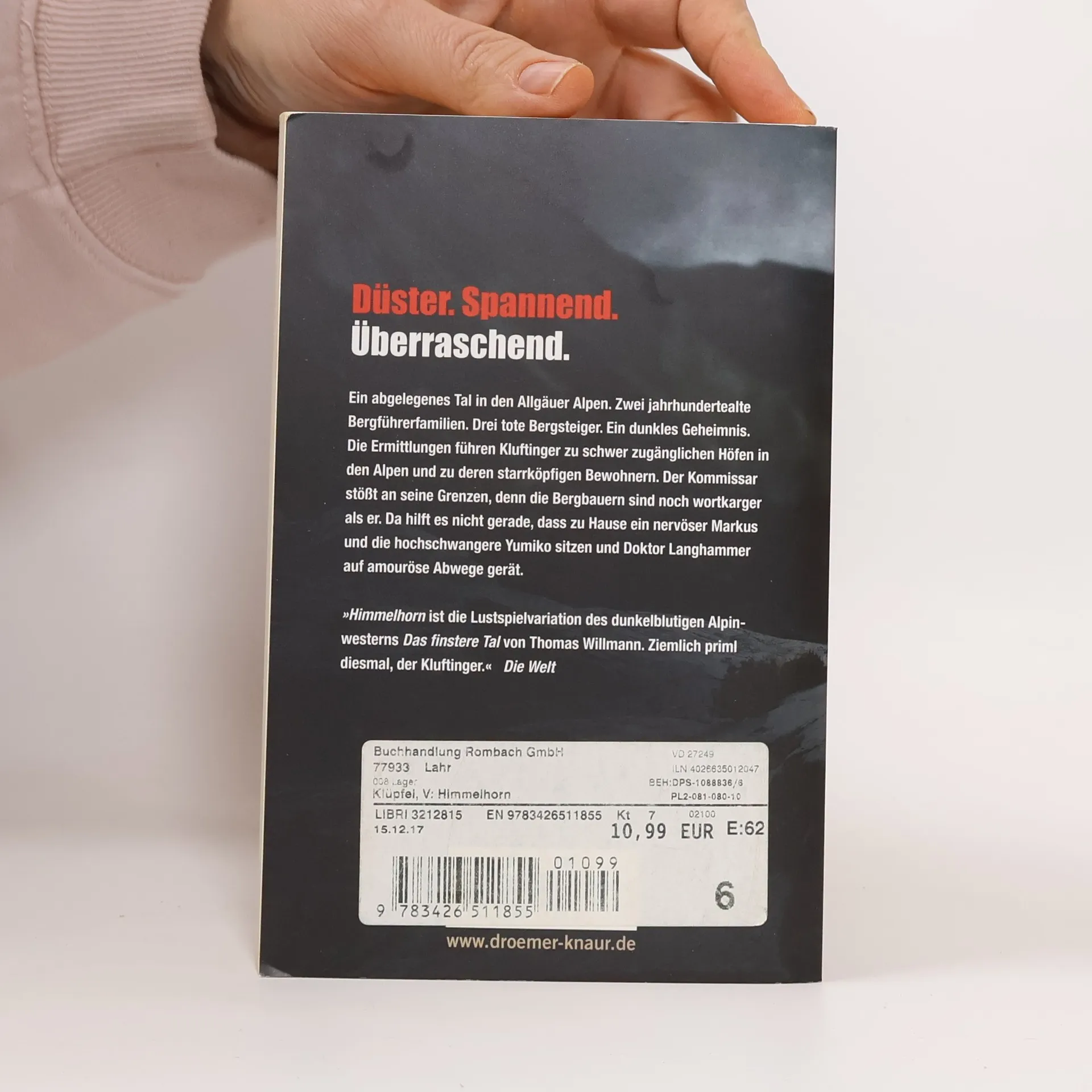 Der neunte Fall der Bestseller-Autoren Volker Klüpfel und Michael Kobr führt den Kult-Kommissar Kluftinger in die Allgäuer Alpen, genauer gesagt auf das Himmelhorn, einen der gefährlichsten Berge des Allgäus. Natürlich liebt Klufti die Berge – wenn sie kässpatzenförmig auf seinem Teller aufragen. Doch der neueste Streich von Gesundheitsfetischist Langhammer befördert den Kommissar samt E-Bike tief in die Allgäuer Alpen, wo die beiden prompt auf drei Leichen stoßen: ein bekannter Dokumentarfilmer und zwei einheimische Bergführer, die einen Film über die Erstbesteigung des Himmelhorns drehen wollten. Wie es scheint, waren sie dem als äußerst gefährlich geltenden Gipfel nicht gewachsen. Die Ermittlungen im Umfeld der Toten führt Klufti in sehr abgelegene Alpentäler und zu deren starrköpfigen Bewohnern, die noch wortkarger sind als er.