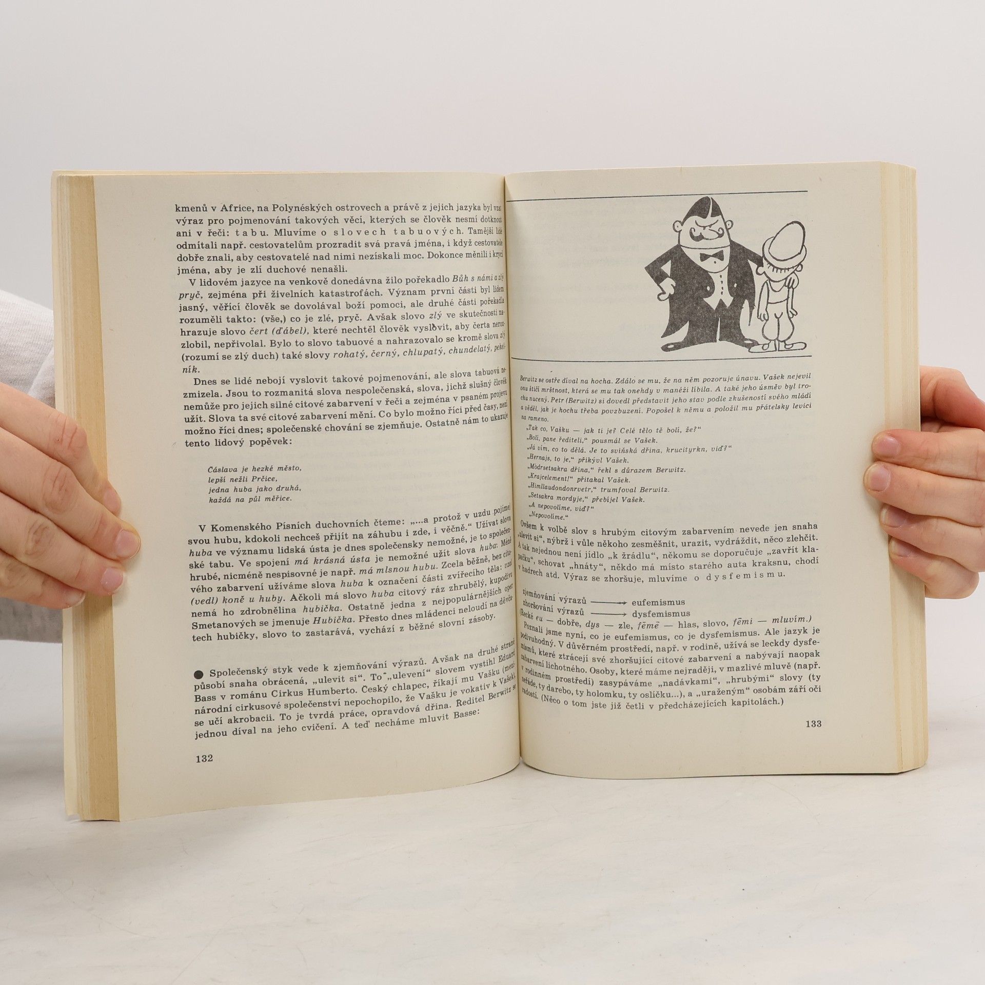Vtipně napsaná a vtipnými ilustracemi provázená kniha o českém jazyku uvádí zábavnou formou do všech jazykových disciplín od všeobecných otázek o jazyce a od historie českého jazyka přes hlásky, slova a věty, pravopis,slovní zásobu, tvoření slov, slovní druhy, větosloví ke gramatice. Kniha odborně fundovaná, ale snažící se o přitažlivý přístup k jazyku ve všech směrech.