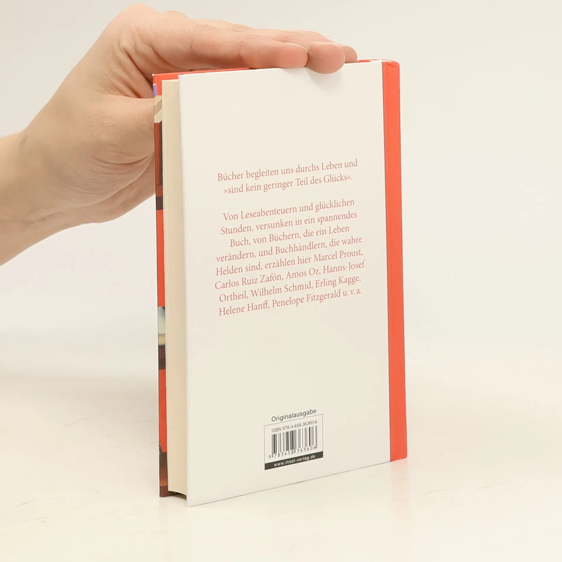 Bücher begleiten uns durchs Leben und "sind kein geringer Teil des Glücks" (Friedrich der Große). "Das grenzenloseste aller Abenteuer der Kindheit, das war das Leseabenteuer" (Astrid Lindgren), später "helfen sie freundschaftlich, sich im stürmischen Wirrwarr der Gedanken, Gefühle und Ereignisse zurechtzufinden" (Maxim Gorki) und "ein Universum zu erforschen" (Marguerite Duras).Von Leseabenteuern und glücklichen Stunden, versunken in ein spannendes Buch; von Büchern, die ein Leben verändern, und Buchhändlern, die wahre Helden sind, erzählen Marcel Proust, Carlos Ruiz Zafón, Amos Oz, Hanns-Josef Ortheil, Wilhelm Schmid, Erling Kagge, Helene Hanff, Penelope Fitzgerald u. v. a.