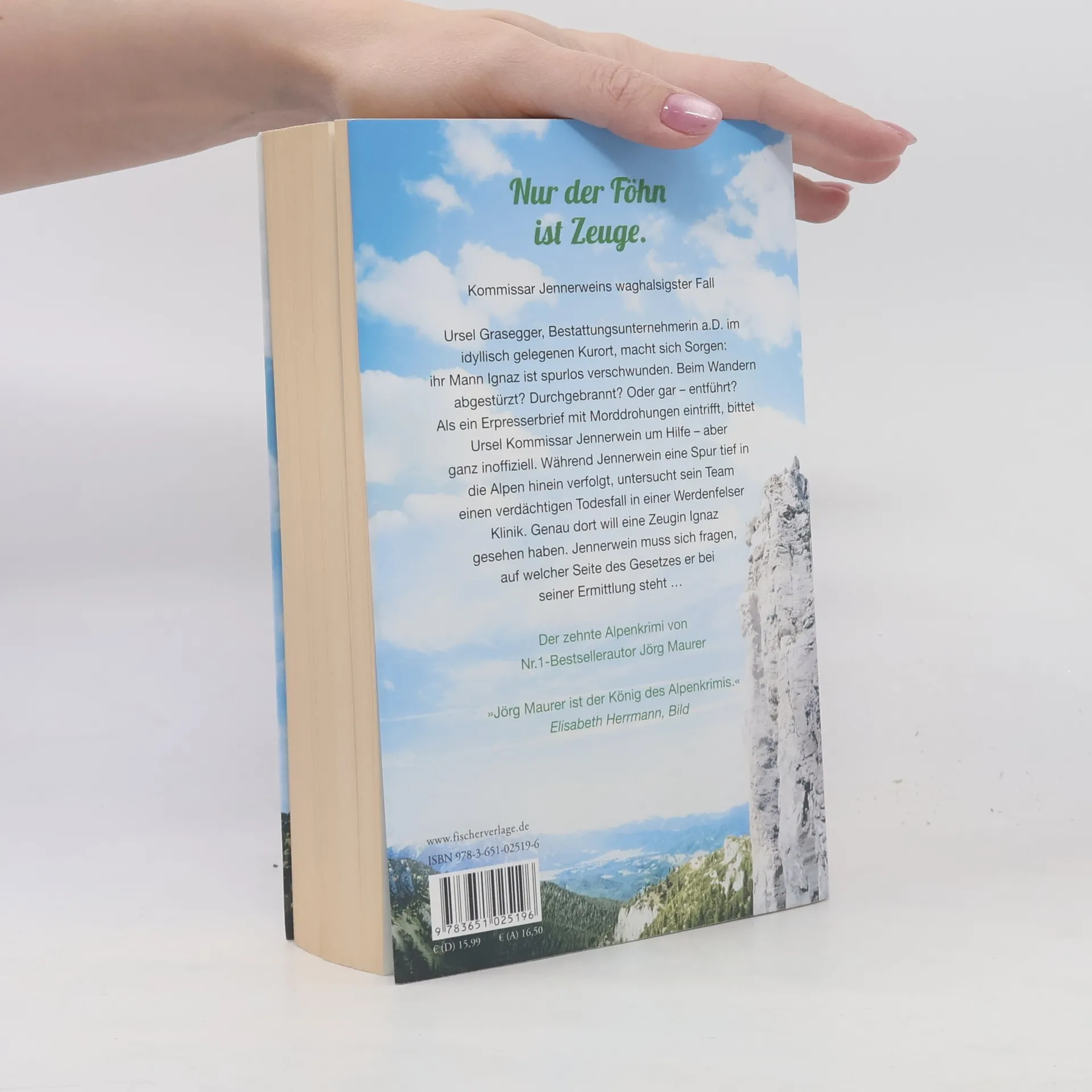 Nur der Föhn kennt die ganze Wahrheit. Kommissar Jennerweins waghalsigster Fall – der zehnte Alpenkrimi von Nr.1-Bestsellerautor Jörg Maurer Kommissar Hubertus Jennerwein gönnt sich eine Auszeit. Aber schon vor der geplanten Abreise trifft er auf dem Bahnhof einen Kommissar-Kollegen aus dem Allgäu und wird aufgehalten. Gerade als die beiden so richtig ins ermittlerische Fachsimpeln kommen, erreicht Jennerwein ein Hilferuf aus dem Kurort: Ursel Grasegger, Bestattungsunternehmerin a. D., hat eine blutige Morddrohung gegen Ignaz erhalten. Ihr Mann ist seit Tagen unauffindbar. Ist er in den Händen von Entführern? Oder hat er heimlich etwas Illegales geplant, was nun schiefgegangen ist? Jennerwein weiß nur zu gut, dass die Graseggers beste Mafiaverbindungen haben. Aber er verspricht Ursel, Ignaz‘ Spur außerdienstlich zu verfolgen – und bringt sich in noch nie gekannte Gefahr. Sein Team geht derweil tödlichen Umtrieben von Medizinern nach, eine frühere Freundin von Ignaz kündigt ihre bevorstehende Ermordung an, und auf einmal steht Jennerwein vor dem Abgrund seiner Polizeikarriere…