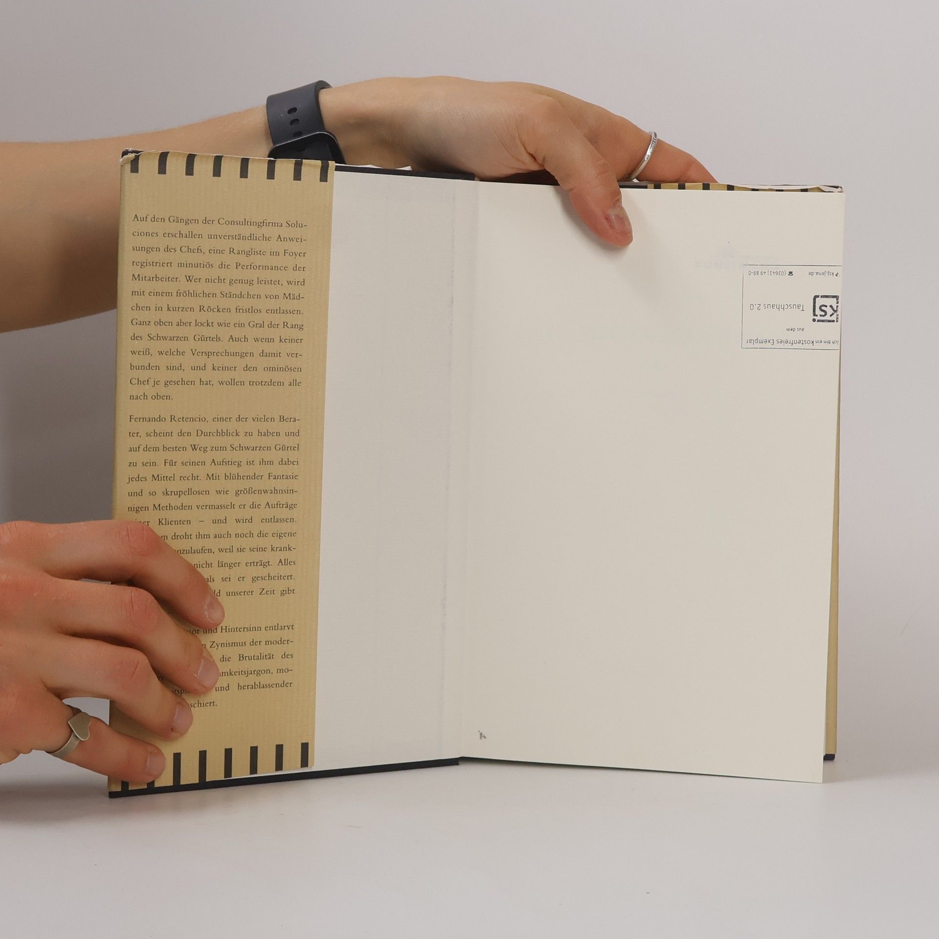 Auf den Gängen der Consultingfirma Soluciones erschallen unverständliche Anweisungen des Chefs, eine Rangliste im Foyer registriert minutiös die Performance der Mitarbeiter. Wer nicht genug leistet, wird mit einem fröhlichen Ständchen von Mädchen in kurzen Röcken fristlos entlassen. Ganz oben aber lockt wie ein Gral der Rang des Schwarzen Gürtels. Auch wenn keiner weiß, welche Versprechungen damit verbunden sind, und keiner den ominösen Chef je gesehen hat, wollen trotzdem alle nach oben. Fernando Retencio, einer der vielen Berater, scheint den Durchblick zu haben und auf dem besten Weg zum Schwarzen Gürtel zu sein. Für seinen Aufstieg ist ihm dabei jedes Mittel recht. Mit blühender Phantasie und so skrupellosen wie größenwahnsinnigen Methoden vermasselt er die Aufträge seiner Klienten – und wird entlassen. Außerdem droht ihm auch noch die eigene Ehefrau davonzulaufen, weil sie seine krankhafte Eifersucht nicht länger erträgt. Alles sieht danach aus, dass er gescheitert ist. Doch ein wahrer Held unserer Zeit gibt nicht auf … Mit bösem Humor und Hintersinn entlarvt Eduardo Rabasa den Zynismus einer modernen Unternehmenskultur, die die Brutalität des Wettbewerbs mit Achtsamkeitsjargon, mobilen Arbeitsplätzen und herablassender Wohltätigkeit kaschiert.