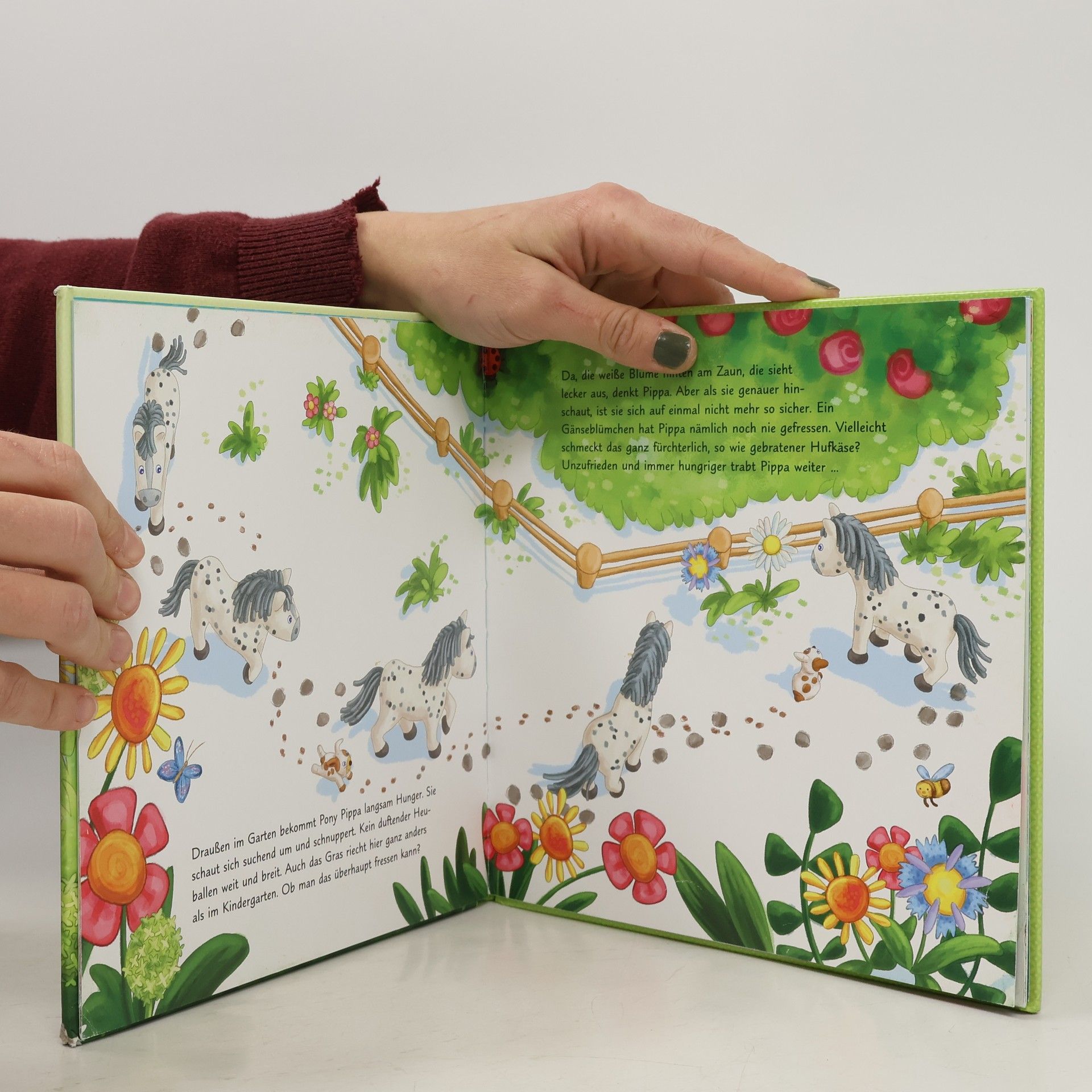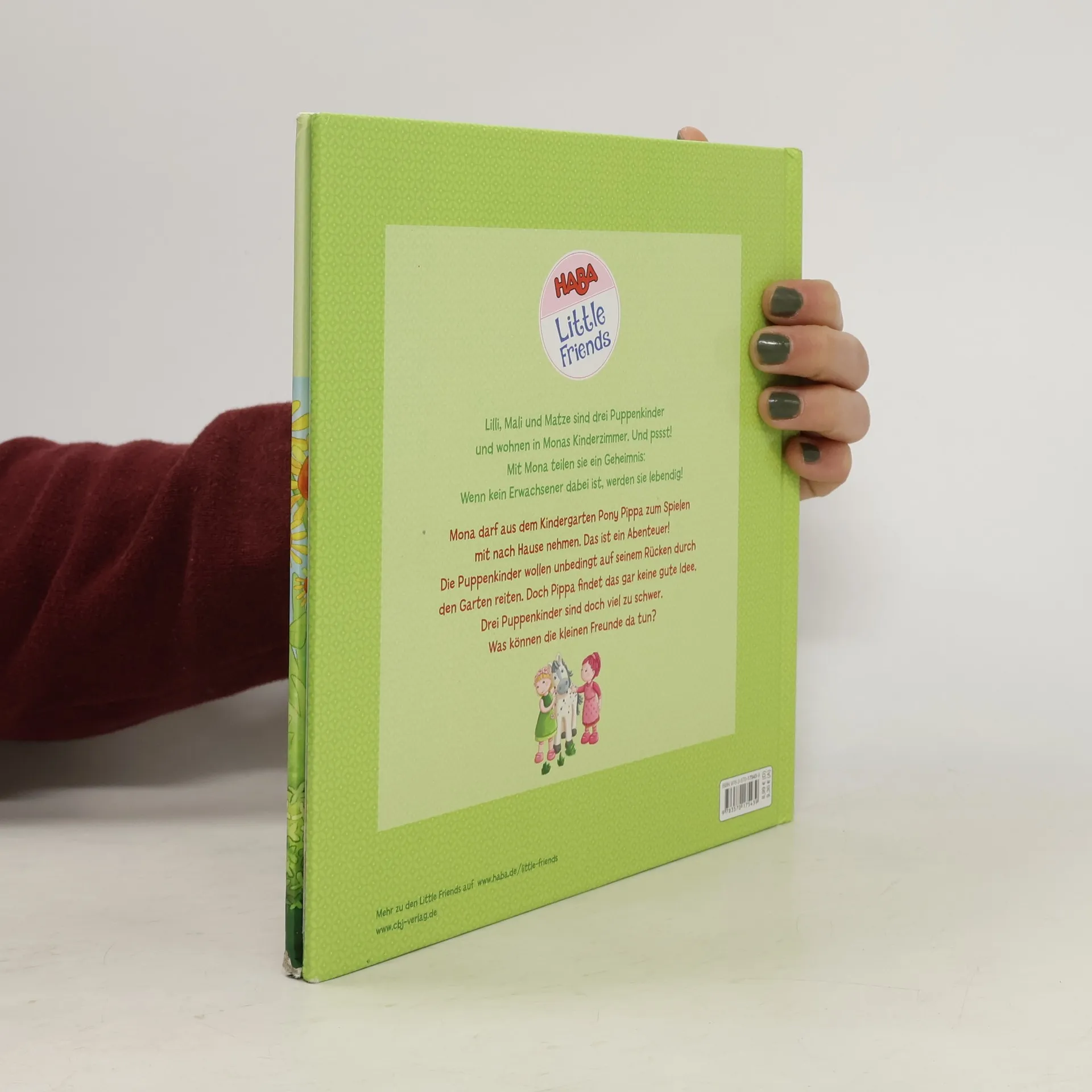 Wir sind die Little Friends - Komm mit in unsere Welt! Lilli, Mali und Matze sind drei Puppenkinder und wohnen in Monas Kinderzimmer. Und pssst! Mit Mona teilen sie ein Geheimnis: Wenn kein Erwachsener dabei ist, werden sie lebendig! Mona darf aus dem Kindergarten Pony Pippa zum Spielen mit nach Hause nehmen. Das ist ein Abenteuer! Die Puppenkinder wollen unbedingt auf seinem Rücken durch den Garten reiten. Doch Pippa findet das gar keine gute Idee. Drei Puppenkinder sind doch viel zu schwer. Und außerdem hat Pippa schrecklichen Hunger ... Ausstattung: Mit fbg. Illustrationen