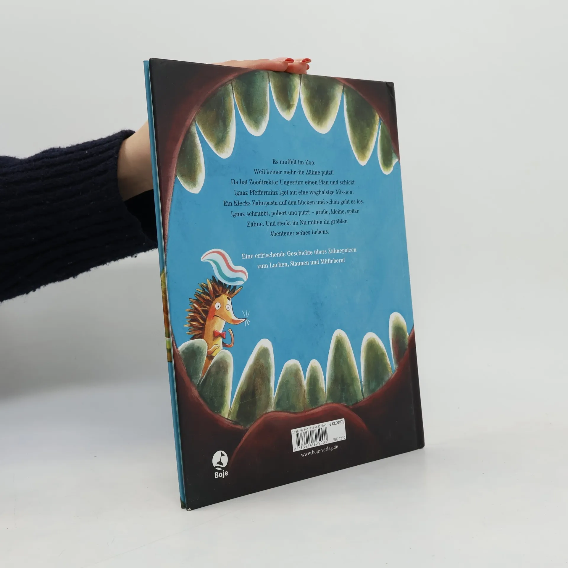 Frischer Wind mit Zahnputzigel Ignaz! Es müffelt im Zoo. Weil keiner mehr die Zähne putzt! Da hat Zoodirektor Ungestüm einen Plan - und schickt Ignaz Pfefferminz Igel auf eine waghalsige Mission: Ein Klecks Zahnpasta auf den Rücken und schon geht es los. Ignaz schrubbt, poliert und putzt - große, kleine, spitze Zähne. Und steckt im Nu mitten im größten Abenteuer seines Lebens. Dabei traut er sich hoch hinauf zu Frau Giraffe, ins Löwengehege und sogar bis ins Maul von Wilhelm, dem weißen Hai! Eine erfrischende Geschichte übers Zähneputzen ‑ zum Lachen, Staunen und Mitfiebern. So abenteuerlich wie Karius und Baktus! Mit Zahnputzposter