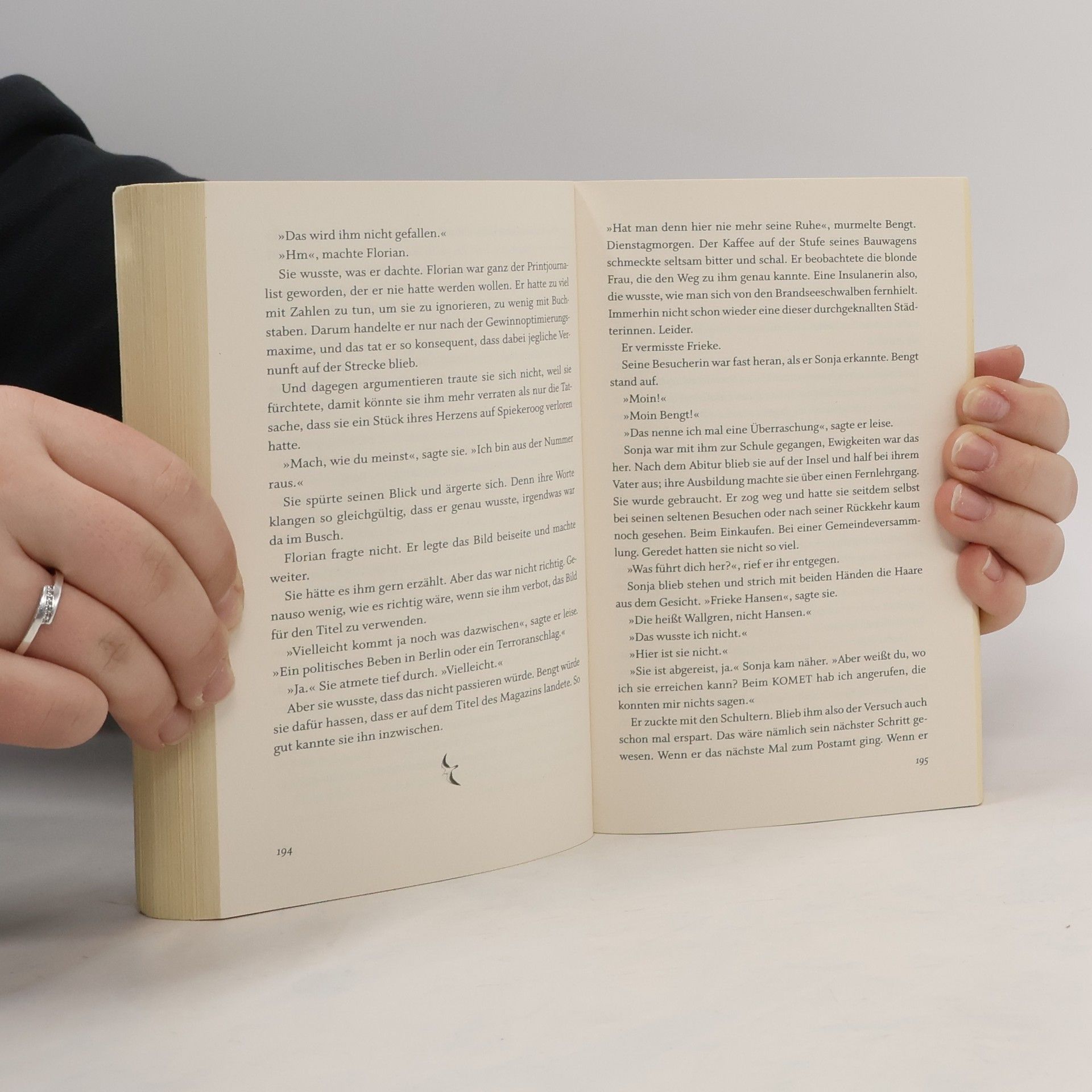 Findet mich das Glück hinter den Dünen? Eigentlich wollte Frieke nur kurz auf Spiekeroog bleiben. Doch dann will ihr Vater, dem sie seit Jahrzehnten erfolgreich aus dem Weg geht, plötzlich an ihrem Leben teilhaben. Der Forscher, den sie über eine seltene Vogelart interviewen soll, entpuppt sich als äußerst charmant, und in der Inselbuchhandlung erinnert sie sich an ihren längst vergessenen Lebenstraum: Menschen mit Büchern glücklich zu machen. Warmherzlich und voller Humor: eine Buchhandlung, eine kleine Insel und die große Liebe.