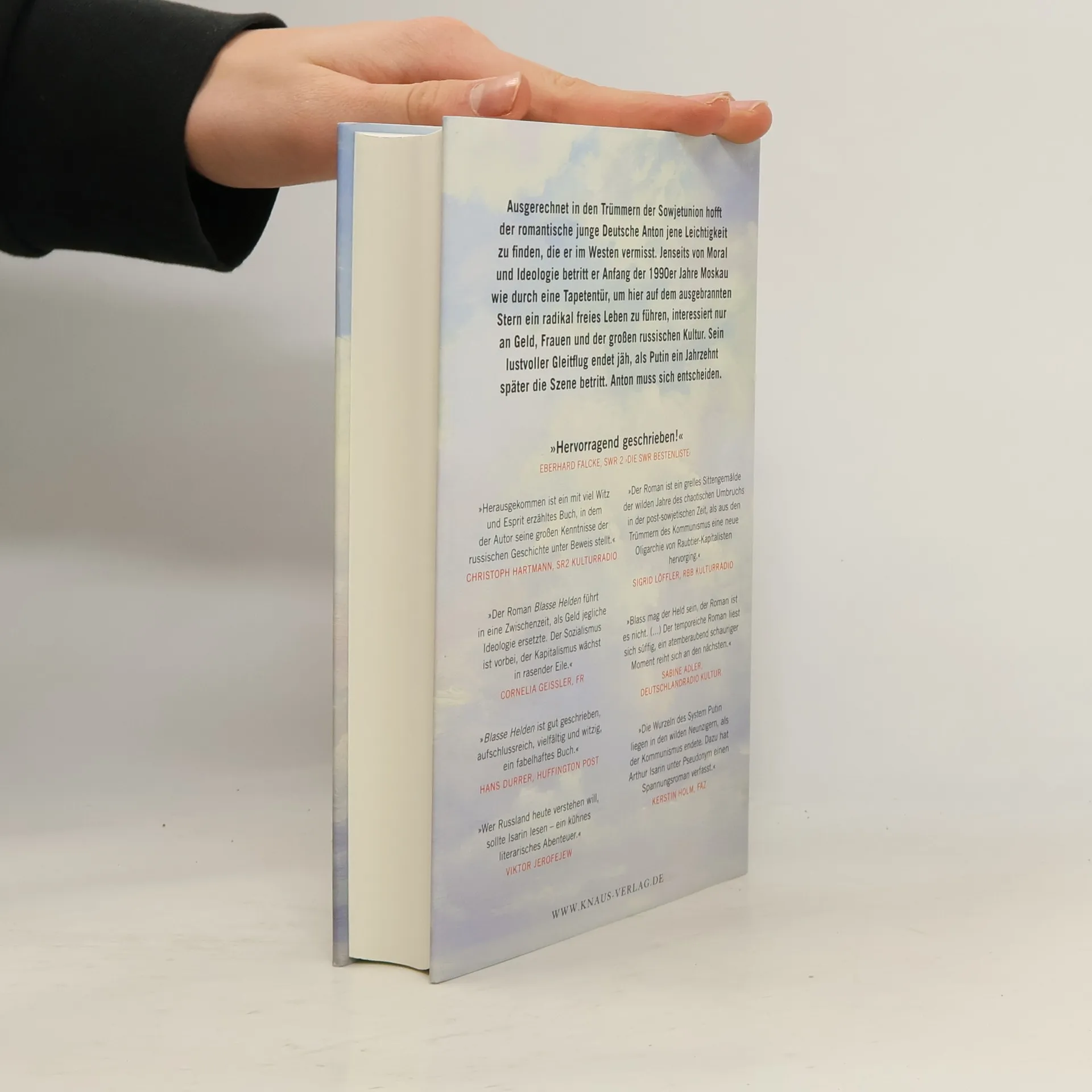Mit seinem Debüt „Blasse Helden“ gelingt Norris von Schirach alias Arthur Isarin ein „kühnes literarisches Abenteuer“ (Viktor Jerofejew) Ausgerechnet in den Trümmern der Sowjetunion hofft der romantische junge Deutsche Anton jene Leichtigkeit zu finden, die er im Westen vermisst. Jenseits von Moral und Ideologie betritt er Anfang der 1990er Jahre Moskau wie durch eine Tapetentür, um hier auf dem ausgebrannten Stern ein radikal freies Leben zu führen, interessiert nur an Geld, Frauen und der großen russischen Kultur. Sein lustvoller Gleitflug endet jäh, als Putin ein Jahrzehnt später die Szene betritt. Anton muss sich entscheiden.