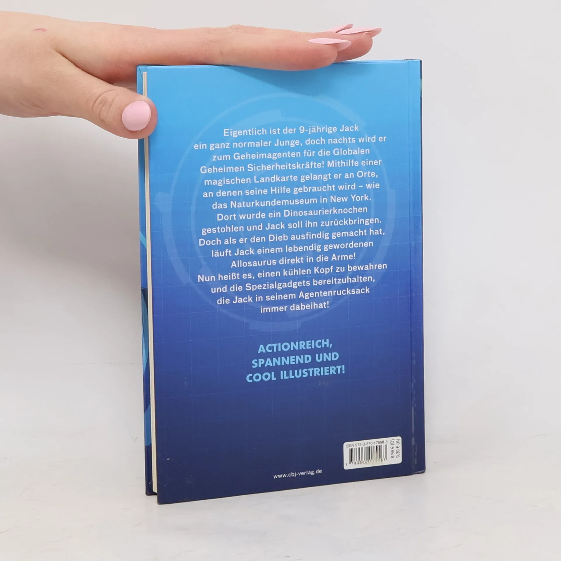 Superagent Jack bei seinem ersten Einsatz! Eigentlich ist der 9-jährige Jack ein ganz normaler Junge, doch nachts wird er zum Geheimagenten für die Globalen Geheimen Sicherheitskräfte. Mithilfe einer magischen Landkarte gelangt er an Orte, an denen seine Hilfe gebraucht wird – wie das Museum of Natural History in New York. Dort wurde ein Dinosaurierknochen gestohlen und Jack soll ihn zurückbringen. Doch als er den Dieb ausfindig gemacht hat, läuft Jack einem lebendig gewordenen Allosaurus direkt in die Arme! Nun heißt es, einen kühlen Kopf bewahren und die Spezialgeräte bereithalten, die Jack in seinem Agentenrucksack immer dabei hat! •Actionreiche Agentenserie für Jungs ab 6 Jahren •Temporeich, wenig Umfang, cool illustriert Ausstattung: Mit s/w Illustrationen