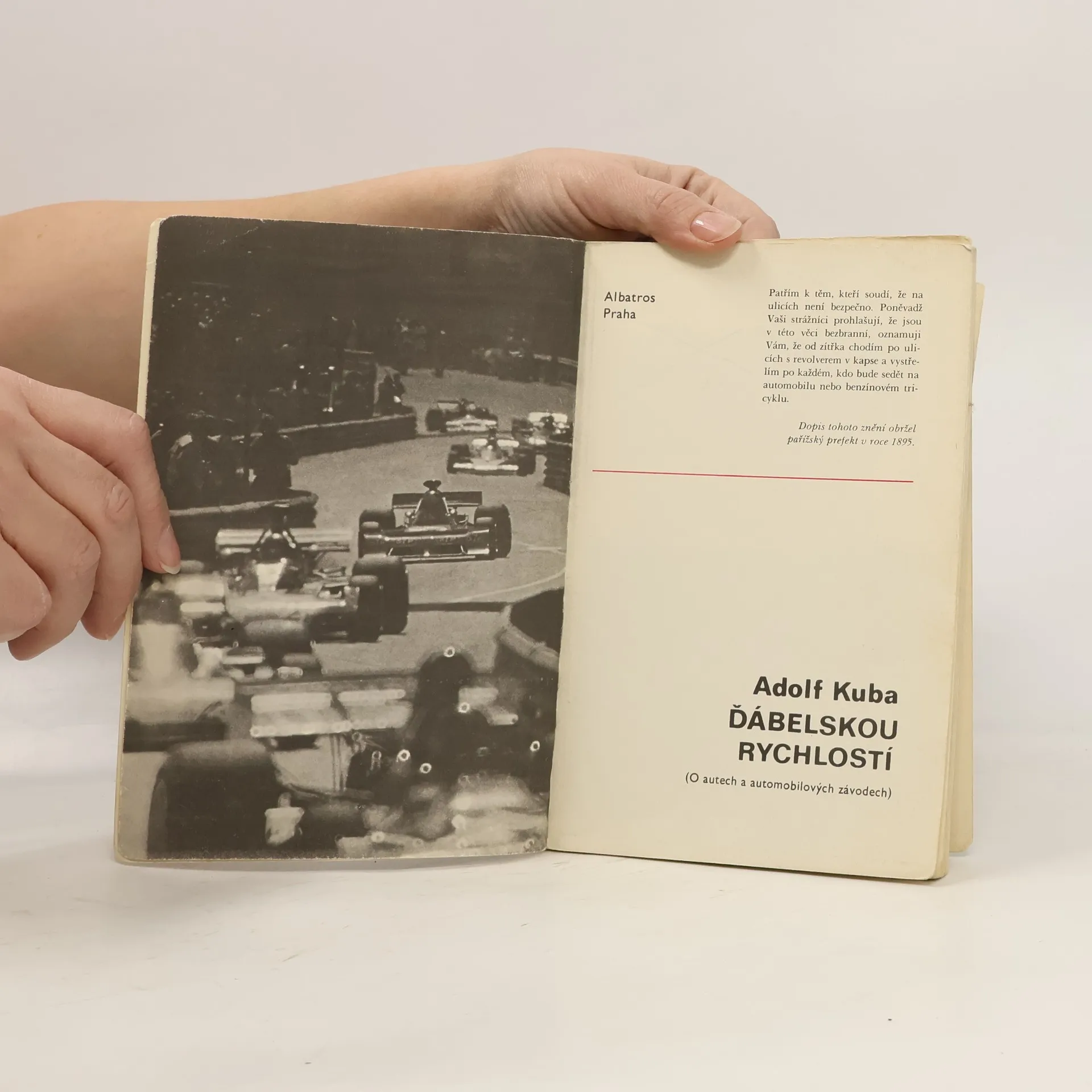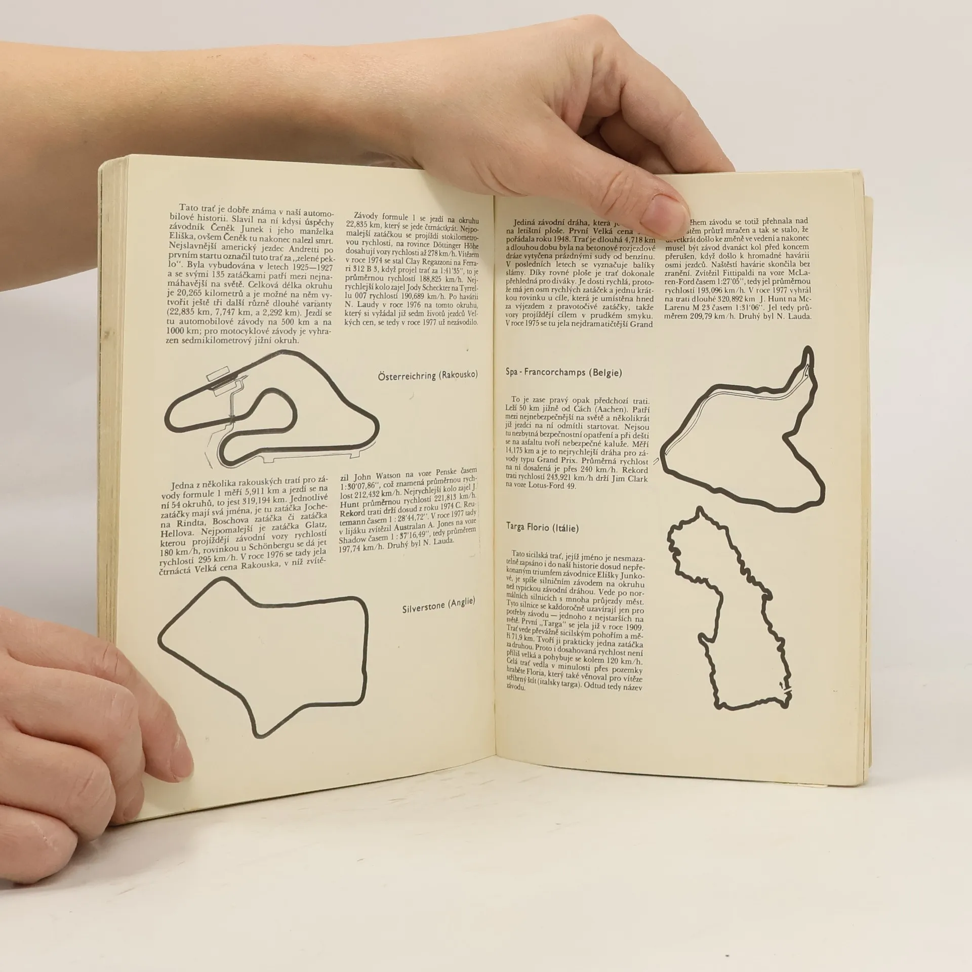 Kniha o automobilových závodech a lidech okolo nich. – Historie závodů automobilů od začátku do roku 1976, včetně fotografií – Seznam vítězů v závodech Grand Prix od roku 1950 do roku 1976 – Seznam světových rychlostních rekordů od roku 1768 – 24 fotografií konstruktérů a závodníků – 45 automobilových znaků s popisem historie – 18 barevných kreseb F1 a snímků ze závodů