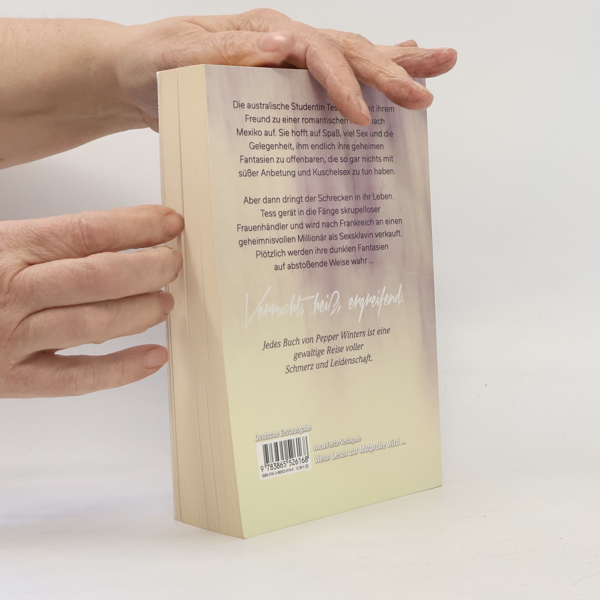 Die australische Studentin Tess beginnt eine romantische Reise nach Mexiko, um ihre geheimen Fantasien auszuleben. Doch sie wird von Frauenhändlern gefangen genommen und als Sexsklavin verkauft. Ihre dunklen Wünsche werden auf erschreckende Weise Realität. Pepper Winters' Werke sind geprägt von Schmerz und Leidenschaft.