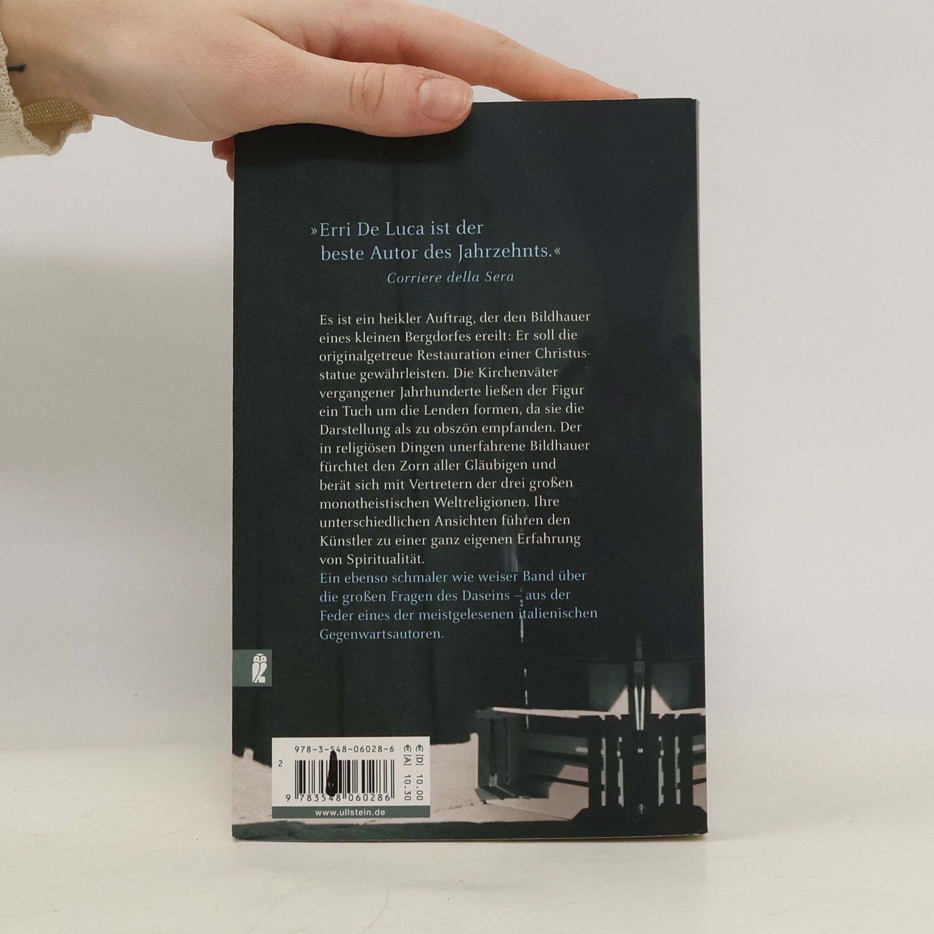 „Erri De Luca ist der beste Autor des Jahrzehnts.“ Corriere della Sera Ein kleines Bergdorf in Italien. Hier lebt der namenlose Erzähler recht unbehelligt als Bildhauer, Restaurator und Bergführer, bis er eines Tages einen ungewöhnlichen Auftrag übernimmt: Er soll die lebensgroße Statue eines gekreuzigten Jesus „entkleiden“. Dem in Marmor gehauenen Gottessohn wurde nachträglich ein Lendenschurz übergestülpt, nun soll er wieder in seiner ganzen Nacktheit erscheinen. Der selbst nicht sehr gläubige Erzähler ist ratlos – handelt es sich um einen Akt der Blasphemie? Er wendet sich an den Bischof, spricht mit einem Rabbiner und einem muslimischen Arbeiter, sucht Antworten auf die Frage nach den Grenzen von Leben und Kunst in der Religion. Eindrucksvoll und sprachmächtig schildert De Luca, wie sich dem Bildhauer während seiner Arbeit die Erfahrung des Glaubens immer tiefer erschließt.