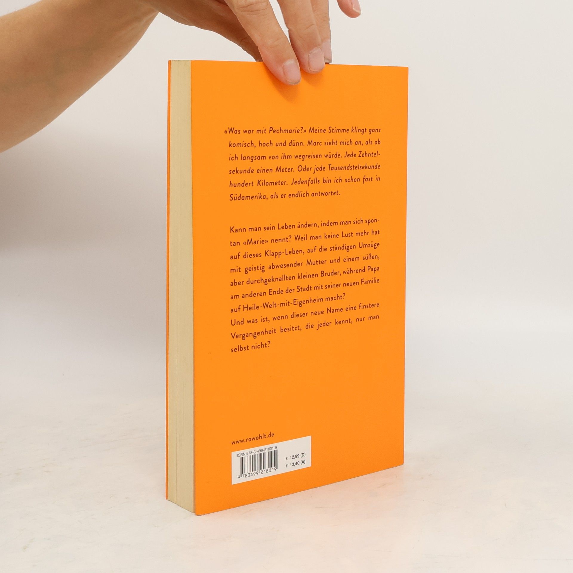 «Was war mit Pechmarie?» Meine Stimme klingt ganz komisch, hoch und dünn. Marc sieht mich an, als ob ich langsam von ihm wegreisen würde. Jede Zehntelsekunde einen Meter. Oder jede Tausendstelsekunde hundert Kilometer. Jedenfalls bin ich schon fast in Südamerika, als er endlich antwortet. Kann man sein Leben ändern, indem man sich spontan «Marie» nennt? Weil man keine Lust mehr hat auf dieses Klapp-Leben, auf die ständigen Umzüge mit geistig abwesender Mutter und einem süßen, aber durchgeknallten kleinen Bruder, während Papa am anderen Ende der Stadt mit seiner neuen Familie auf Heile-Welt-mit-Eigenheim macht? Und was ist, wenn dieser neue Name eine finstere Vergangenheit besitzt, die jeder kennt, nur man selbst nicht?