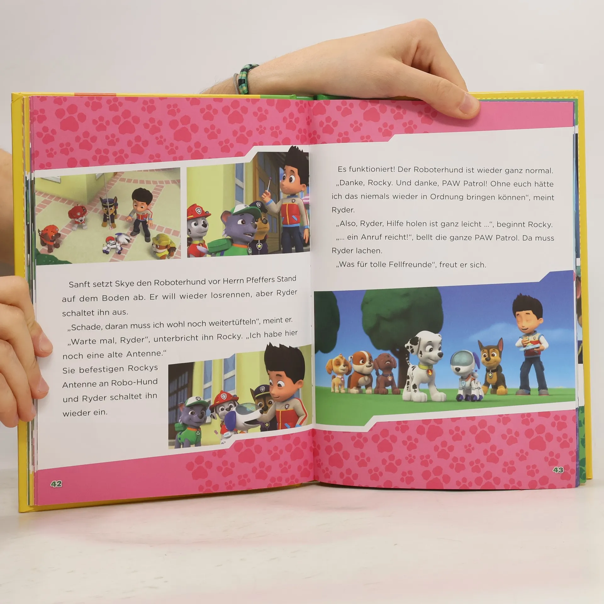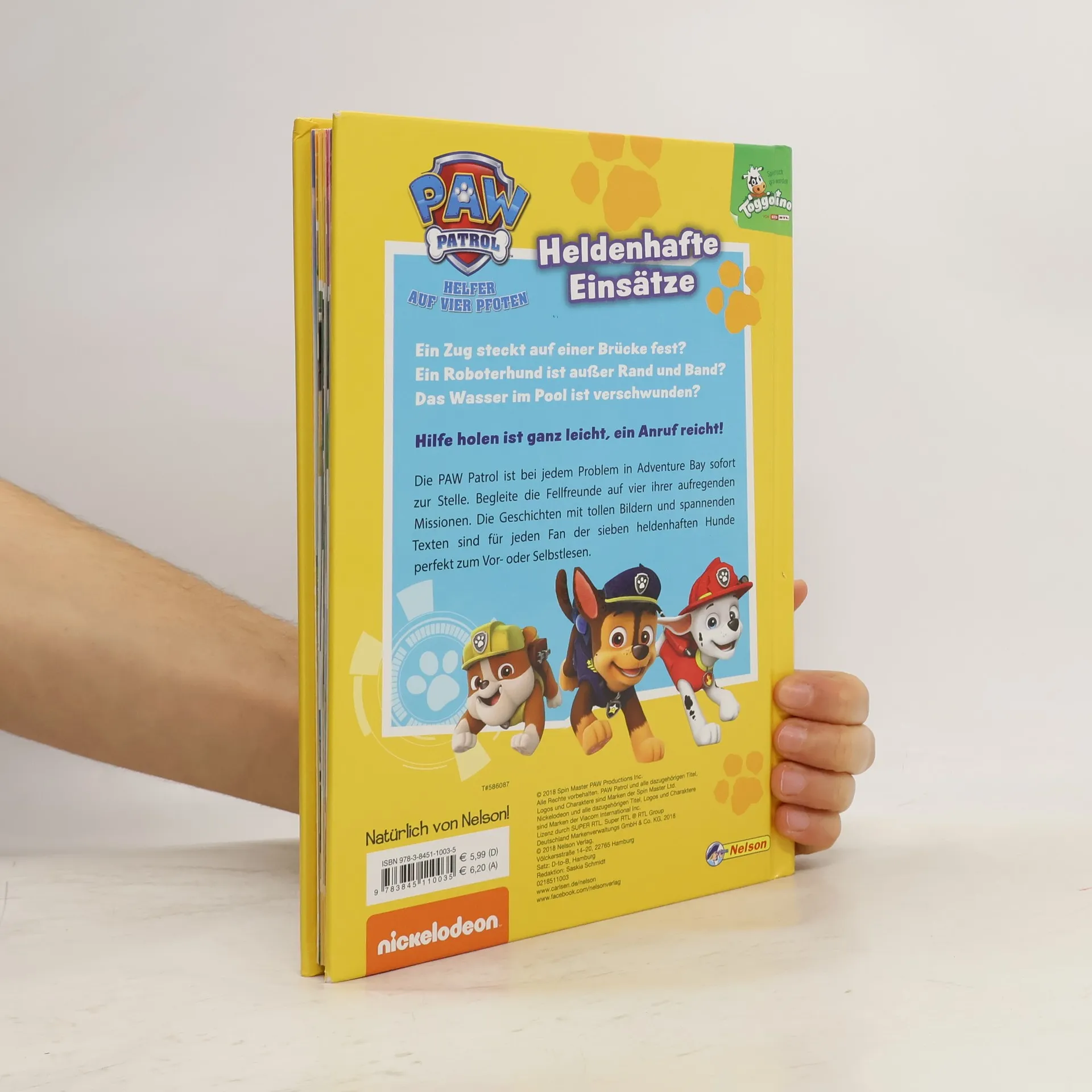 Begleite die Fellfreunde auf vier ihrer aufregenden Missionen aus der TV-Serie. Ein Zug steckt auf einer Brücke fest? Ein Roboterhund ist außer Rand und Band? Das Wasser im Pool ist verschwunden? Hilfe holen ist ganz leicht, ein Anruf reicht! Die PAW Patrol ist bei jedem Problem in Adventure Bay sofort zur Stelle. Die Geschichten mit tollen Bildern und spannenden Texten sind für jeden Fan der sieben heldenhaften Hunde perfekt zum Vor- oder Selberlesen