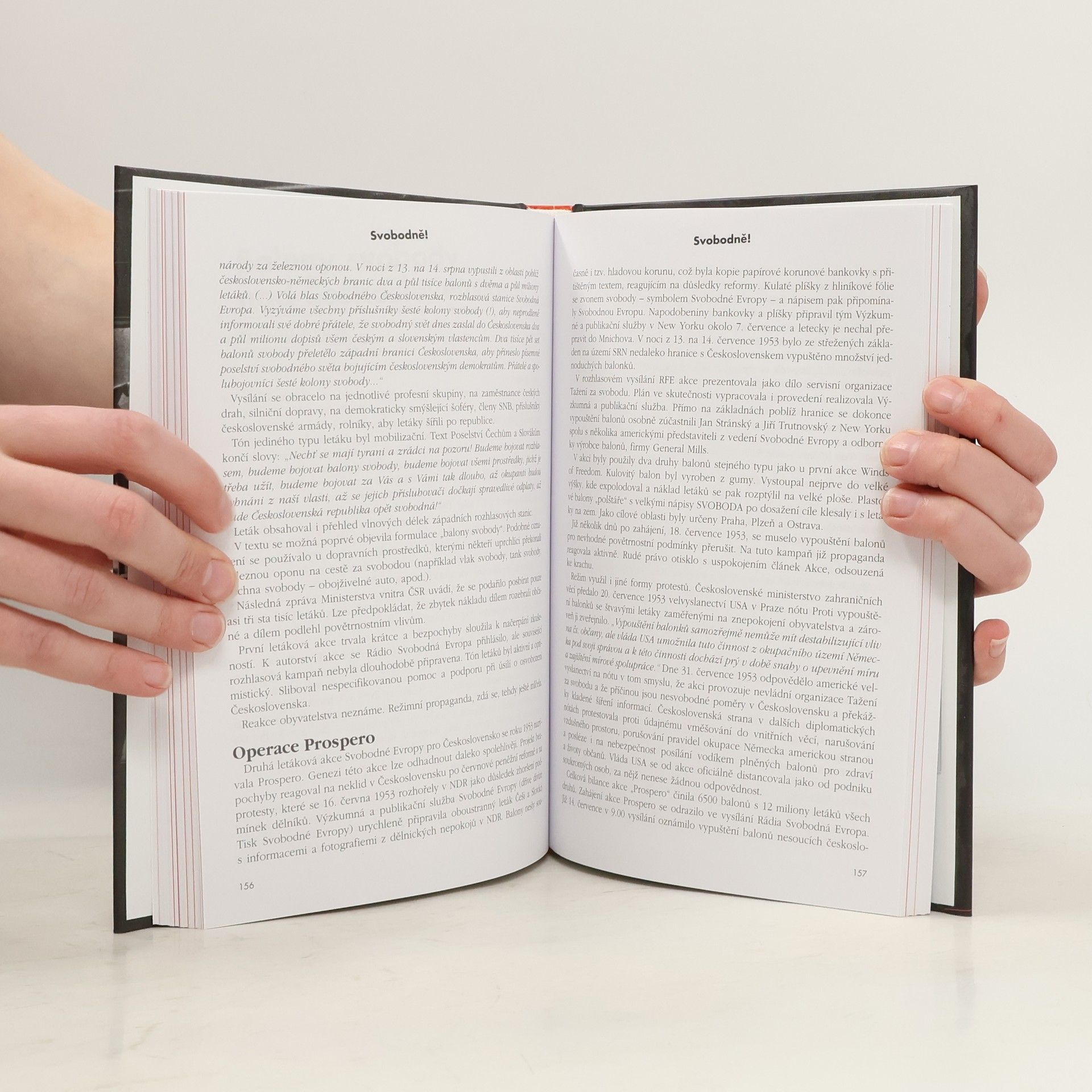 Publikace Svobodně! vznikla u příležitosti 60, výročí zahájení československého vysílání Rádia Svobodná Evropa. Shrnuje informace o dějinách této legendární rozhlasové stanice od samých počátků až do devadesátých let minulého století. Připomíná známá jména české kultury spjatá se Svobodnou Evropou jako Ferdinand Peroutka, Julius Firt či Karel Kryl, v nezbytných společenských souvislostech podrobně mapuje proměny programu. Nevyhýbá se ani negativním stránkám života redakce, jako byl například poměr Čechů a Slováků, "osmačtyřicátníků" a "osmašedesátníků" či tzv. kostrbiáda z počátku šedesátých let. Důležité místo je věnováno i reakcím komunistického režimu na vysílání RSE, pokusům diskreditovat stanici (viz aféra s kapitánem Minaříkem) a znemožnit její příjem v Československu. Vůbec poprvé je zde zveřejněn rozhovor Václava Havla, který poskytl RSE v červenci 1989.