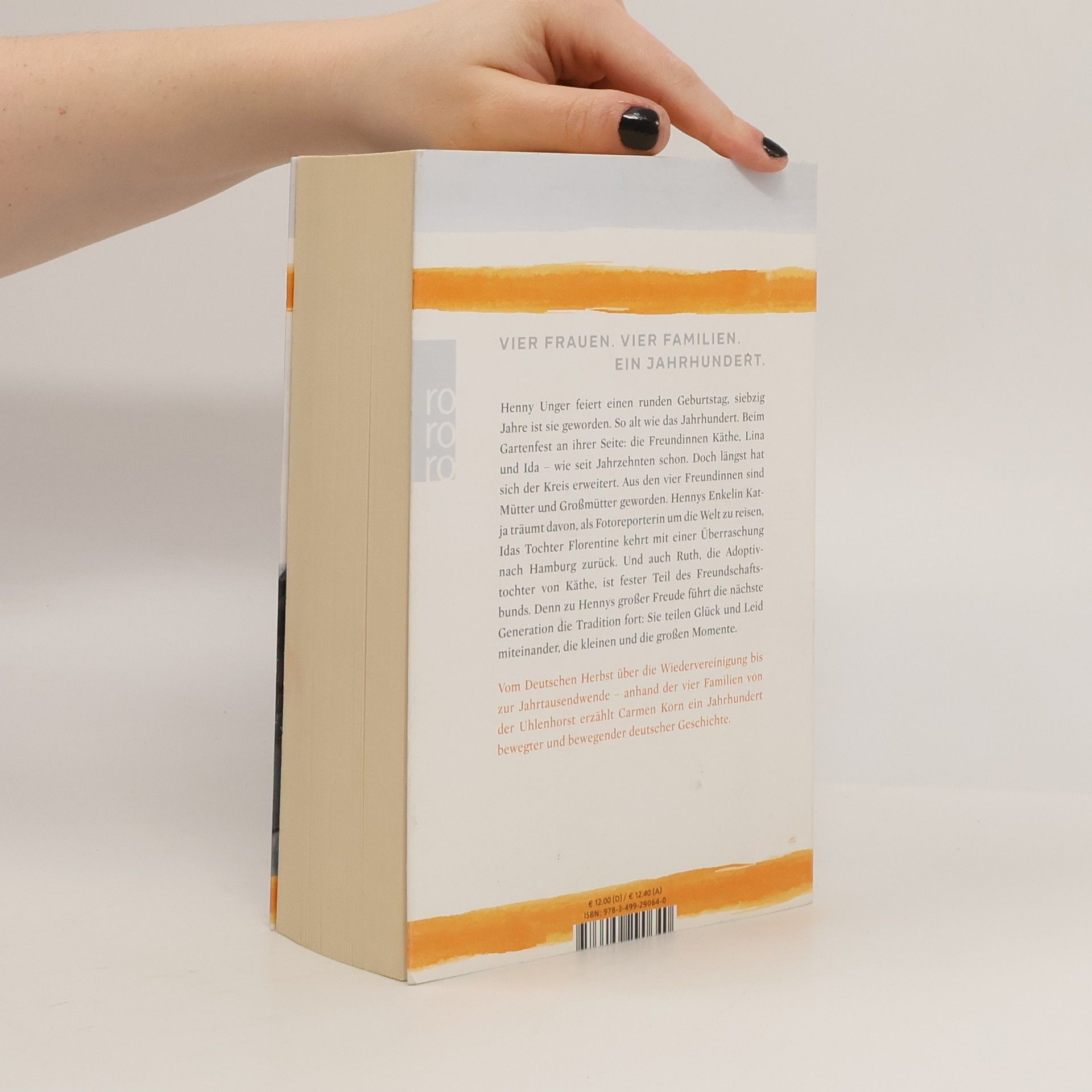 Der fulminante Abschluss der Bestseller-Trilogie endlich im Taschenbuch. Henny Unger feiert Geburtstag, siebzig Jahre ist sie geworden. So alt wie das Jahrhundert. Beim Gartenfest an ihrer Seite: die Freundinnen Käthe, Lina und Ida. Doch längst hat sich der Kreis der Gratulanten erweitert. Aus den vier Freundinnen sind Mütter und Großmütter geworden. Hennys Enkelin Katja träumt davon, als Fotoreporterin um die Welt zu reisen, Idas Tochter Florentine kehrt mit einer Überraschung nach Hamburg zurück. Und auch Ruth, die Adoptivtochter von Käthe, ist fester Teil des Freundschaftsbunds. Denn die nächste Generation führt die Tradition fort: Sie teilen Glück und Leid miteinander, die kleinen und die großen Momente. Vom Deutschen Herbst über die Wiedervereinigung bis zur Jahrtausendwende – anhand der vier Familien aus Uhlenhorst erzählt Carmen Korn ein Jahrhundert bewegter und bewegender deutscher Geschichte. Ihre Jahrhunderttrilogie begeistert unzählige Leser und Leserinnen.