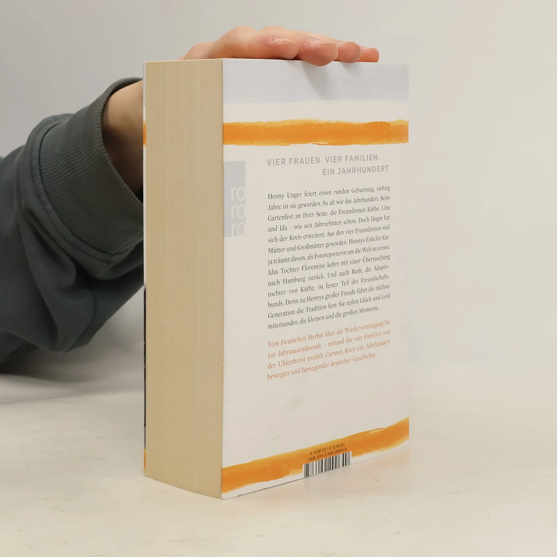 Der fulminante Abschluss der Bestseller-Trilogie endlich im Taschenbuch. Henny Unger feiert Geburtstag, siebzig Jahre ist sie geworden. So alt wie das Jahrhundert. Beim Gartenfest an ihrer Seite: die Freundinnen Käthe, Lina und Ida. Doch längst hat sich der Kreis der Gratulanten erweitert. Aus den vier Freundinnen sind Mütter und Großmütter geworden. Hennys Enkelin Katja träumt davon, als Fotoreporterin um die Welt zu reisen, Idas Tochter Florentine kehrt mit einer Überraschung nach Hamburg zurück. Und auch Ruth, die Adoptivtochter von Käthe, ist fester Teil des Freundschaftsbunds. Denn die nächste Generation führt die Tradition fort: Sie teilen Glück und Leid miteinander, die kleinen und die großen Momente. Vom Deutschen Herbst über die Wiedervereinigung bis zur Jahrtausendwende – anhand der vier Familien aus Uhlenhorst erzählt Carmen Korn ein Jahrhundert bewegter und bewegender deutscher Geschichte. Ihre Jahrhunderttrilogie begeistert unzählige Leser und Leserinnen.