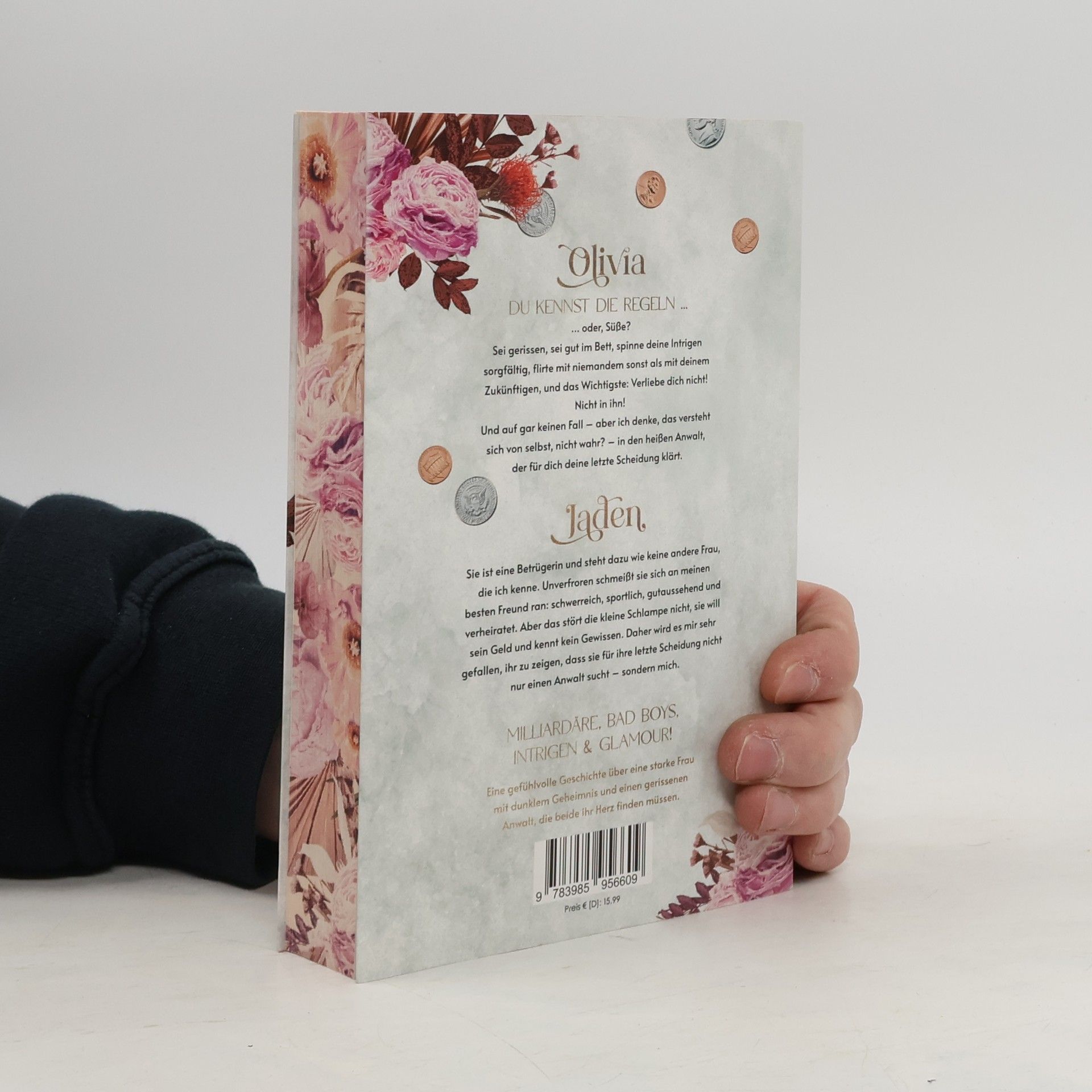 Jaden Carter hat der Liebe abgeschworen. Als Scheidungsanwalt hält er weder viel von der Ehe noch von Frauen, die nur an das Geld ihres Gatten gelangen wollen. Als Olivia Bloom vor seiner Kanzlei in seinem Privathaus in Miami Beach auftaucht, weiß er sofort, wer sie ist: eine Heiratsschwindlerin, die sich an seinen Freunden bereichern will. Mit dem Plan, sie zu überführen, übernimmt er ihr Mandat und muss dabei feststellen, dass die hübsche, gerissene junge Frau ihm selbst gar nicht mal so unähnlich ist. Eine Mission treibt Olivia an, die nichts mit Geld zu tun hat. Was ist ihr Geheimnis? Und wieso entwickelt sich aus dem Hass, den Jaden für sie empfindet, Verständnis und schließlich … Zuneigung? Das kann er definitiv nicht gebrauchen. Aber Olivia macht es ihm nicht leicht, ihr zu widerstehen. Denn auch sie merkt, dass sie der Liebe nach ihren vielen gescheiterten Ehen wieder eine Chance geben sollte … Olivia Du kennst die Regeln ... ... oder, Süße? Sei gerissen, sei gut im Bett, spinne deine Intrigen sorgfältig, flirte mit niemandem sonst als mit deinem Zukünftigen, und das Wichtigste: Verliebe dich nicht! Nicht in ihn! Und auf gar keinen Fall – aber ich denke, das versteht sich von selbst, nicht wahr? – in den heißen Anwalt, der für dich deine letzte Scheidung klärt. Jaden Sie ist eine Betrügerin und steht dazu wie keine andere Frau, die ich kenne. Unverfroren schmeißt sie sich an meinen besten Freund ran: schwerreich, sportlich, gutaussehend und verheiratet. Aber das stört die kleine Schlampe nicht, sie will sein Geld und kennt kein Gewissen. Daher wird es mir sehr gefallen, ihr zu zeigen, dass sie für ihre letzte Scheidung nicht nur einen Anwalt sucht – sondern mich. Eine gefühlvolle Geschichte über eine starke Frau mit dunklem Geheimnis und einen gerissenen Anwalt, die beide ihr Herz finden müssen.