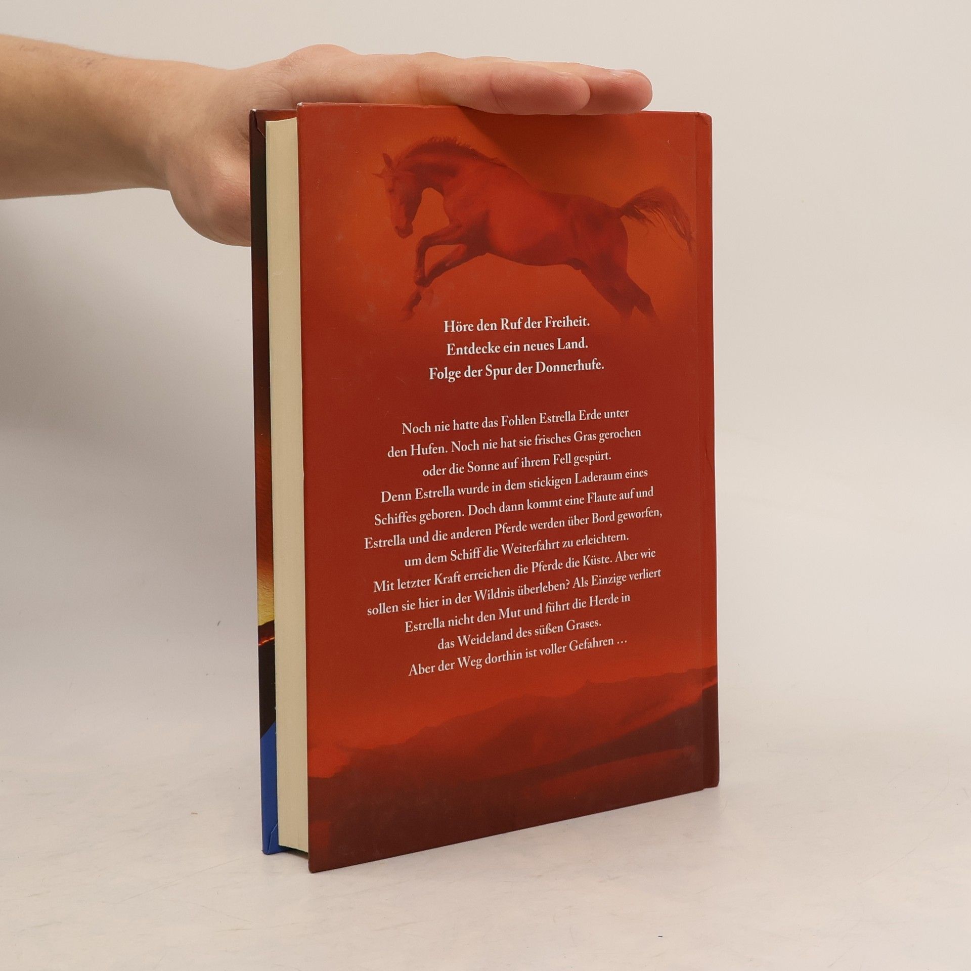 Die Spur der Donnerhufe erzählt die Geschichte von Estrella, einem mutigen Wildpferd-Fohlen, das seine Herde aus der Gefangenschaft der Menschen in die Freiheit führen will. Der Weg zum Weideland des süßen Grases birgt viele Gefahren - doch es ist nicht die Angst, die Estrella antreibt. Es ist der Ruf der Freiheit! Die erfolgreiche Bestseller-Trilogie im Geschenkschuber!