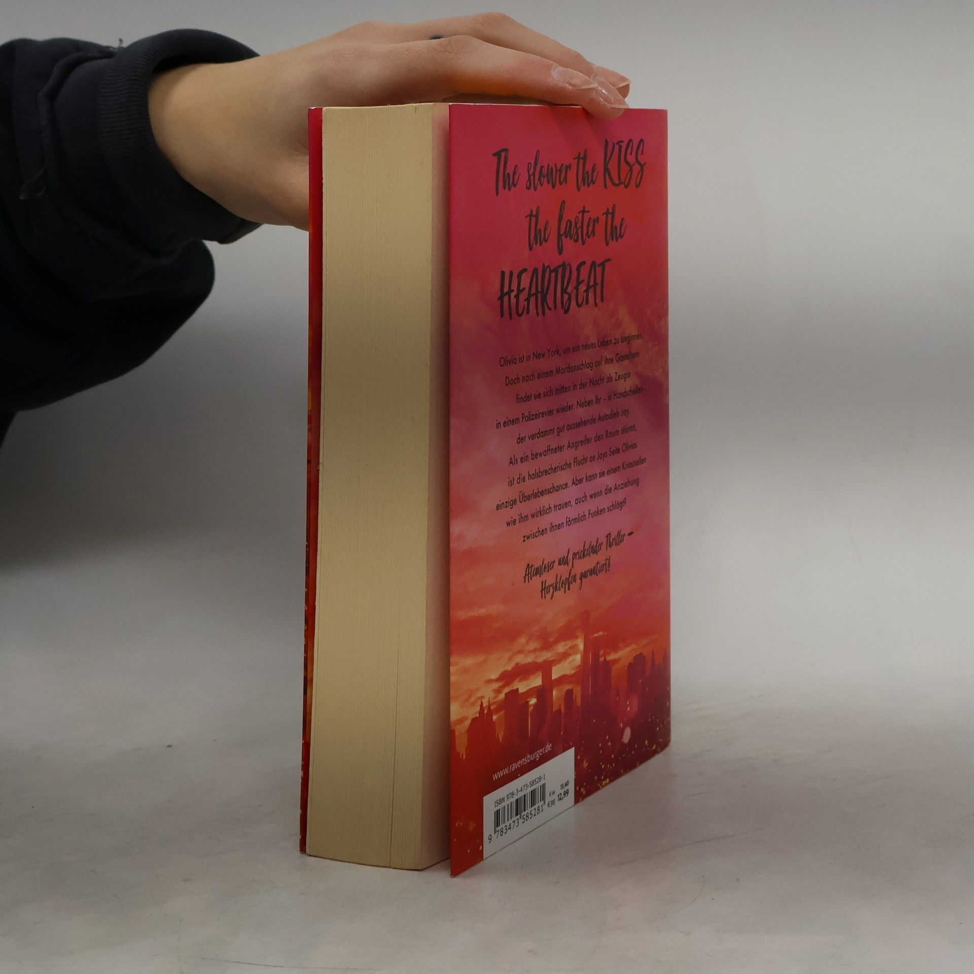 The slower the kissthe faster the heartbeat Olivia ist in New York, um ein neues Leben an der Ballettakademie zu beginnen. Doch nach einem Mordanschlag auf ihre Gasteltern findet sie sich mitten in der Nacht als Zeugin in einem Polizeirevier wieder. Neben ihr – in Handschellen – der verdammt gutaussehende Autodieb Jamie. Als ein bewaffneter Angreifer den Raum stürmt, ist die halsbrecherische Flucht an Jamies Seite Olivias einzige Überlebenschance. Aber kann sie einem Kriminellen wie ihm wirklich trauen, auch wenn die Anziehung zwischen ihnen förmlich Funken schlägt? Als die beiden weiter verfolgt werden und sie erkennen, dass auch Polizei und FBI verstrickt sind, wächst in Olivia ein schrecklicher Verdacht: Sind die Killer in Wahrheit hinter ihr her? *** Adrenalingeladene und prickelnde Romance- einfach unwiderstehlich! ***