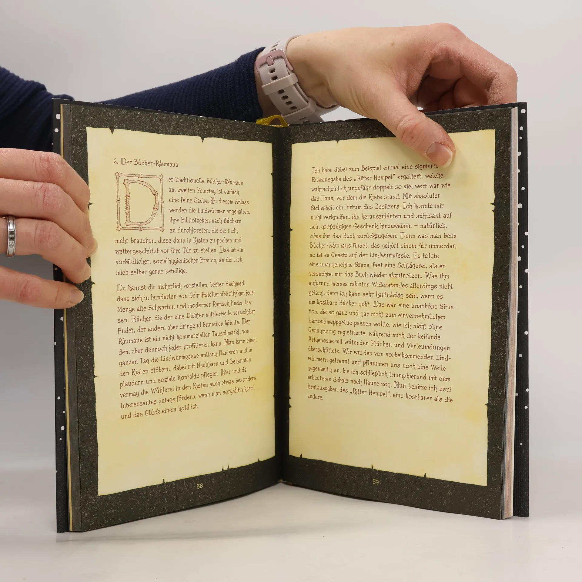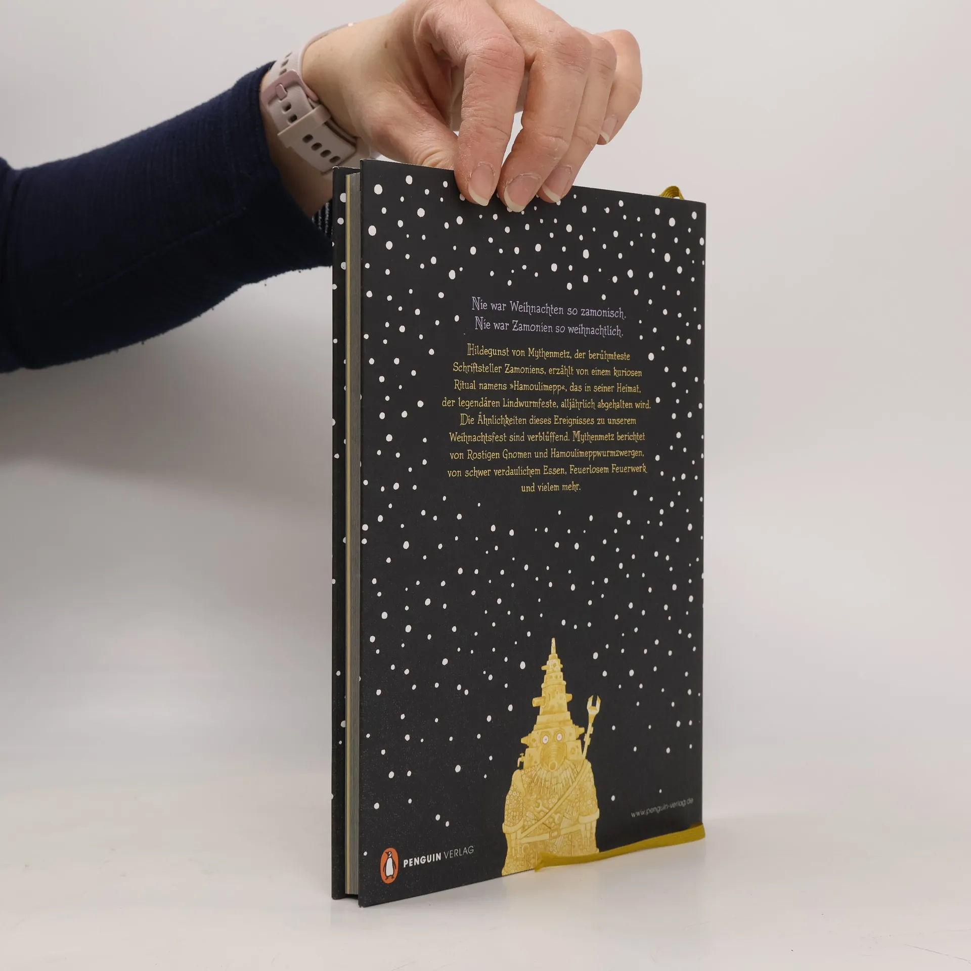 Diese zamonische Weihnachtsgeschichte gehört unter jeden Christbaum! Als Walter Moers den Briefwechsel zwischen Hildegunst von Mythenmetz und dem Buchhaimer Eydeeten Hachmed Ben Kibitzer sichtete, stieß er auf einen Brief, in dem der zamonische Autor ein Fest schildert, das Moers frappierend an unser Weihnachtsfest erinnert hat. Die Lindwürmer Zamoniens begehen es alljährlich und nennen es »Hamoulimepp«. Während dieser drei Feiertage steht die Lindwurmfeste ganz im Zeichen der beiden Figuren »Hamouli« und »Mepp«, die unserem Weihnachtsmann und dem Knecht Ruprecht verblüffend ähneln. Außerdem gehören zur Tradition Hamoulimeppwürmer, Hamoulimeppwurmzwerge, ungesundes Essen, ein Bücher-Räumaus, ein feuerloses Feuerwerk und vieles andere mehr. Laut Moers, kein Freund der Weihnachtsfeierei, gibt dieser Brief von Mythenmetz einen profunden Einblick in die Gebräuche einer beliebten zamonischen Daseinsform, der Lindwürmer. Nie war Weihnachten so zamonisch.