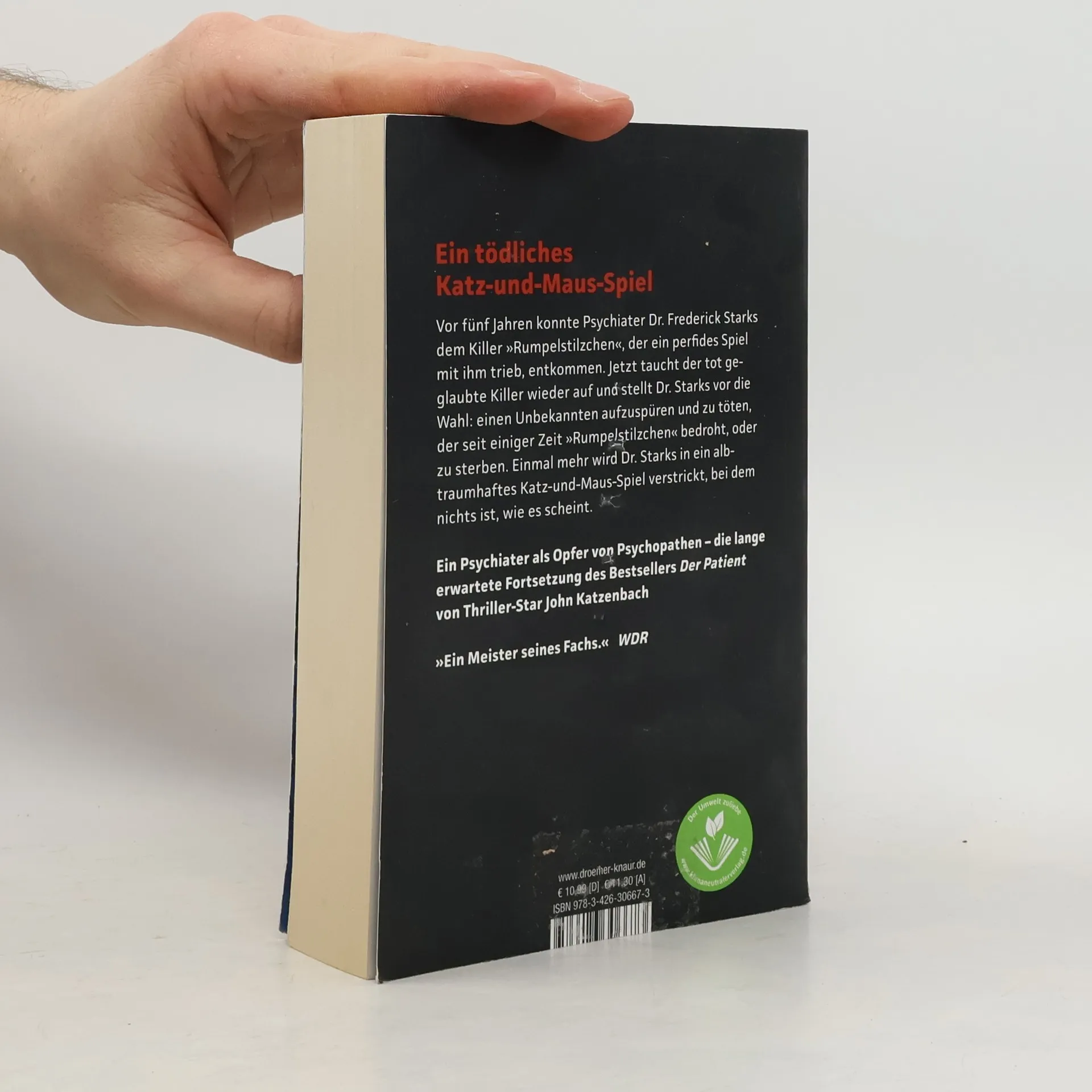 Ein Psychiater wird zum Gejagten! Dr. Frederick Starks glaubte, dem perfiden Killer „Rumpelstilzchen“ entkommen zu sein, den er in einer Schießerei besiegt hatte. Doch plötzlich taucht dieser Killer in seiner Praxis in Miami auf und stellt Starks vor eine unmögliche Wahl: Entweder er findet und tötet einen Unbekannten, der den Killer und dessen Bruder, einen Anwalt, bedroht, oder er verliert sein eigenes Leben. Starks findet sich in einem albtraumhaften Katz-und-Maus-Spiel wieder, in dem alle Beteiligten nur die Auslöschung ihres Widersachers im Sinn haben. Nichts ist, wie es scheint, und Starks‘ Leben steht auf der Kippe. Dieser raffinierte Psychothriller des amerikanischen Bestseller-Autors ist die Fortsetzung von „Der Patient“, kann jedoch unabhängig gelesen werden. „Ein Meister seines Fachs.“ – WDR „Der Psychothriller überzeugt vor allem wegen Katzenbachs gutem Händchen bei der Auswahl seiner Figuren.“ – krimi-couch online