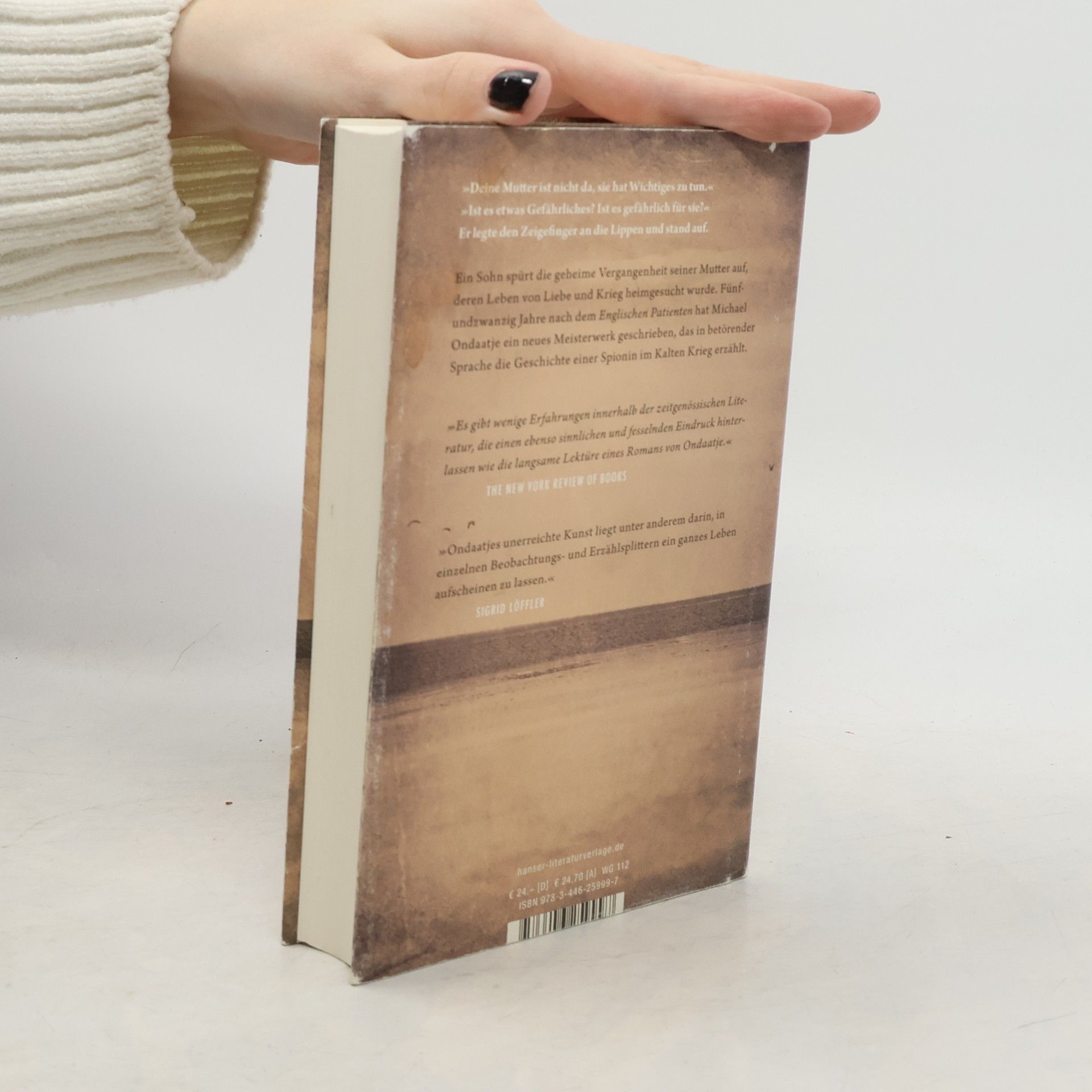 Nach Kriegsende wird der vierzehnjährige Nathaniel mit seiner Schwester Rachel von den Eltern in London zurückgelassen. Der geheimnisvolle „Falter“, der sie in Obhut genommen hat, und dessen exzentrische Freunde kümmern sich fürsorglich um sie. Wer aber sind diese Menschen wirklich? Und was hat es zu bedeuten, dass die Mutter nach langem Schweigen aus dem Nichts wieder zurückkehrt? „Meine Sünden sind vielfältig“, wiederholt sie, mehr gibt sie nicht preis. Als er erwachsen ist, beginnt Nathaniel die geheime Vergangenheit seiner Mutter als Spionin im Kalten Krieg aufzuspüren. Fünfundzwanzig Jahre nach dem „Englischen Patienten“ hat Michael Ondaatje ein neues Meisterwerk geschrieben.
