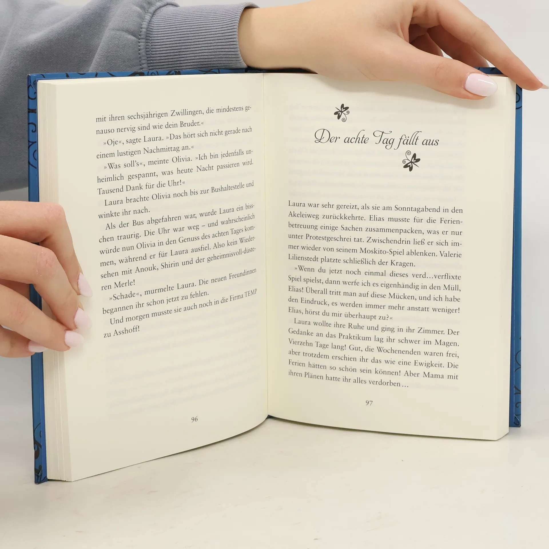 Einen achten Tag in der Woche zu besitzen, ist Fluch und Segen zugleich. Während Laura und ihre Freundinnen lernen, ihre besonderen Fähigkeiten besser zu kontrollieren, greifen die Ereignisse aus der magischen Welt immer stärker in ihren Alltag ein. Olivia fühlt sich ausgeschlossen und Laura droht, ihre beste Freundin zu verlieren. Gleichzeitig taucht ein Mann, der aussieht wie Magister Darius, an einem normalen Wochentag auf – und trifft sich ausgerechnet mit Bernd Asshoff, dem neuen Freund von Lauras Mutter. Als Laura auch noch herausfindet, dass Asshoff sie und ihre Familie ausspioniert, wird sie erst recht misstrauisch ... Ist die Welt des achten Tages in Gefahr?
