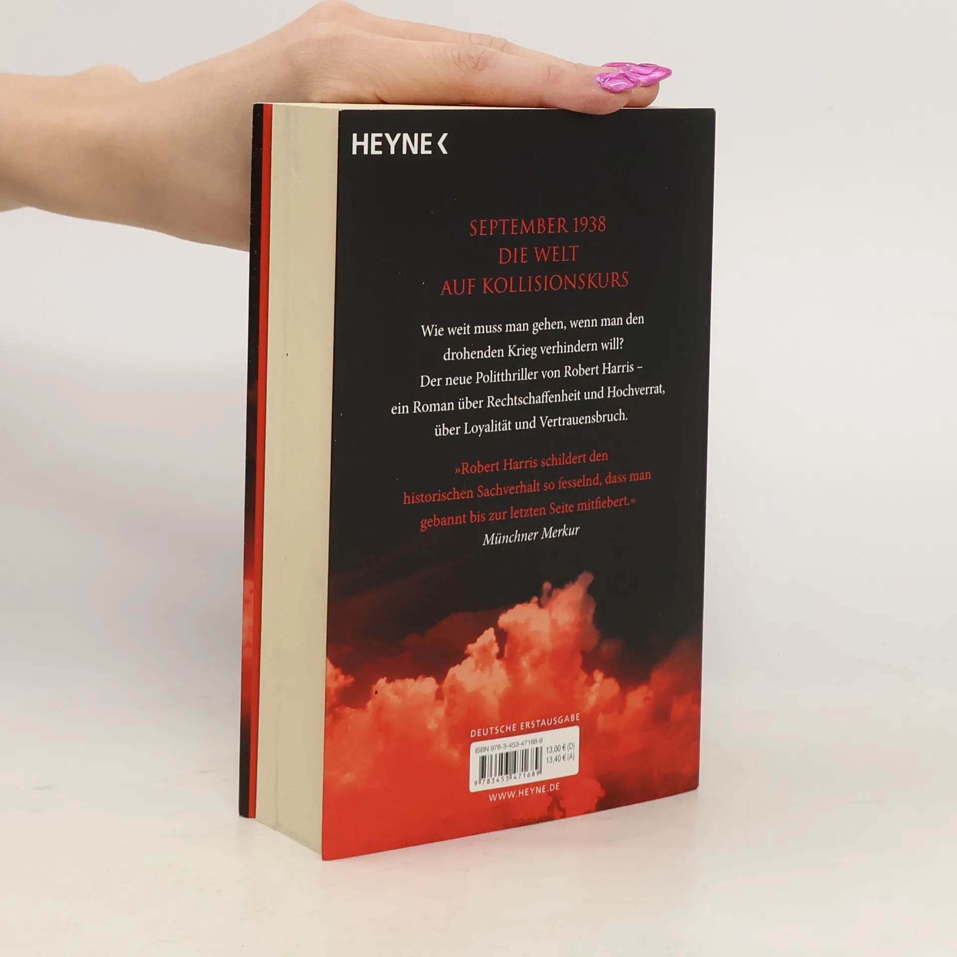 Die Romanvorlage zum Netflix-Politthriller! September 1938. In München treffen sich Hitler, Chamberlain, Mussolini und Daladier zu einer kurzfristig einberufenen Konferenz. Der Weltfrieden hängt am seidenen Faden. Im Gefolge des britischen Premierministers Chamberlain befindet sich Hugh Legat aus dem Außenministerium, der ihm als Privatsekretär zugeordnet ist. Auf der deutschen Seite gehört Paul von Hartmann aus dem Auswärtigen Amt in Berlin zum Kreis der Anwesenden. Den Zugang zur Delegation hat er sich erschlichen. Insgeheim ist er Mitglied einer Widerstandszelle gegen Hitler. Legat und von Hartmann verbindet eine Freundschaft, seit sie in Oxford gemeinsam studiert haben. Nun kreuzen sich ihre Wege wieder. Wie weit müssen sie gehen, wenn sie den drohenden Krieg verhindern wollen? Können sie sich überhaupt gegenseitig trauen?Ein Roman über Hochverrat und Unbestechlichkeit, über Loyalität und Vertrauensbruch. Und wie immer bei Robert Harris lassen sich über die historischen Figuren und Ereignisse erhellende Bezüge zur aktuellen Weltpolitik herstellen.