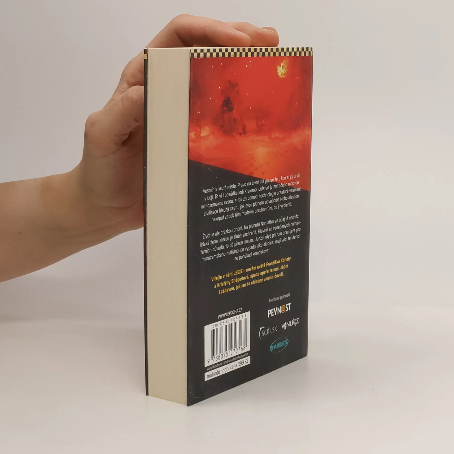 Vesmír je kruté místo. Právo na život má pouze ten, kdo si jej uhájí v boji. To ví i posádka lodi Kraksna. Lidstvo je zotročeno mocnou mimozemskou rasou, a tak za pomoci technologie prastaré vesmírné civilizace hledají cestu, jak svoji planetu osvobodit. Nebo alespoň nakopat zadek těm modrým parchantům, co ji vyplenili. Život je ale otázkou priorit. Na planetě Namathé se údajně nachází lidská žena, kterou je třeba zachránit. Hlavně ze vznešených humanitárních důvodů, to dá přece rozum. Jenže když při tom pracujete pro mimozemského mafiána, co vypadá jako slepice, mají věci tendenci se poněkud komplikovat. Vítejte v sérii Legie – novém světě Františka Kotlety a Kristýny Sněgoňové, space opeře temné, akční i zábavné, jak jen to chladný vesmír dovolí.