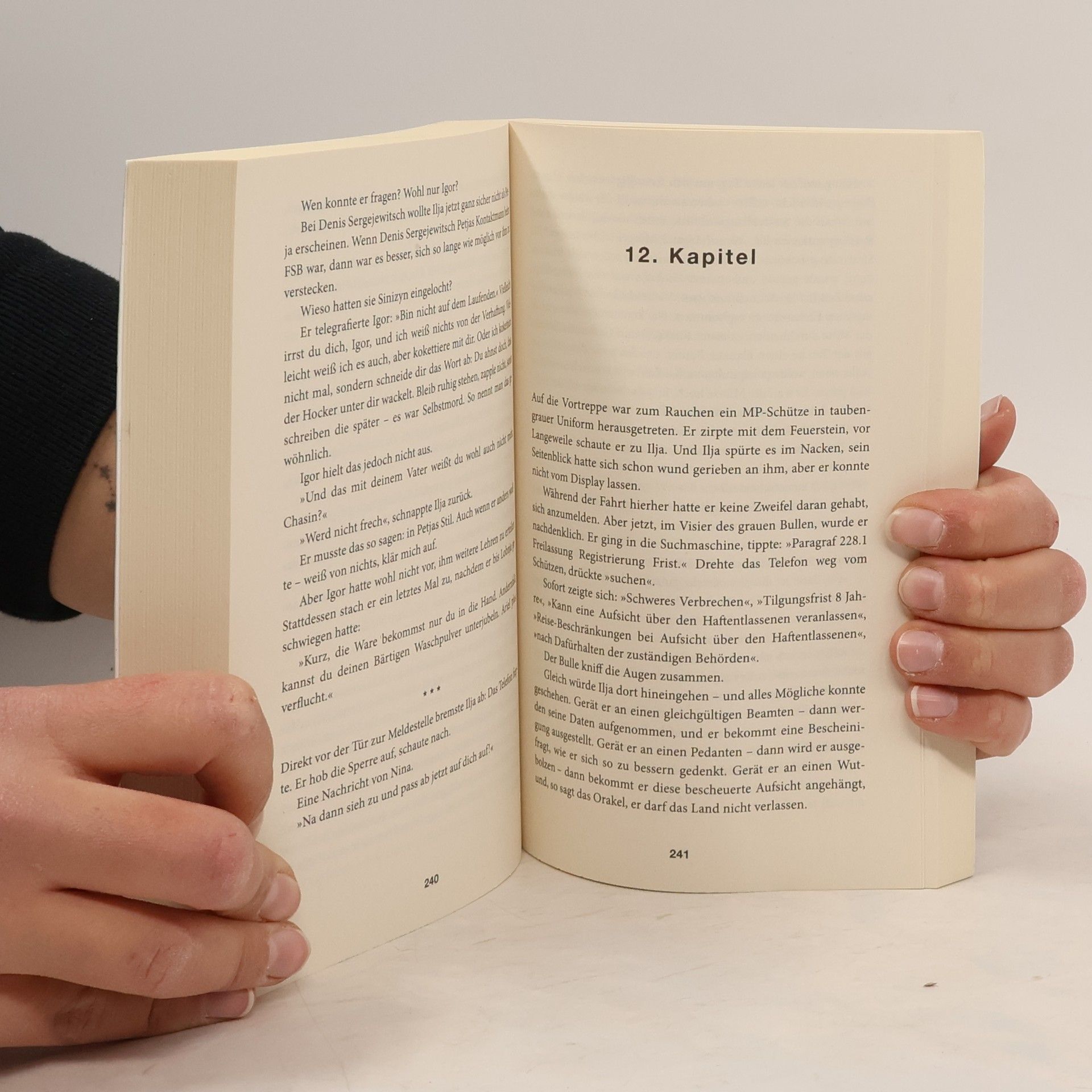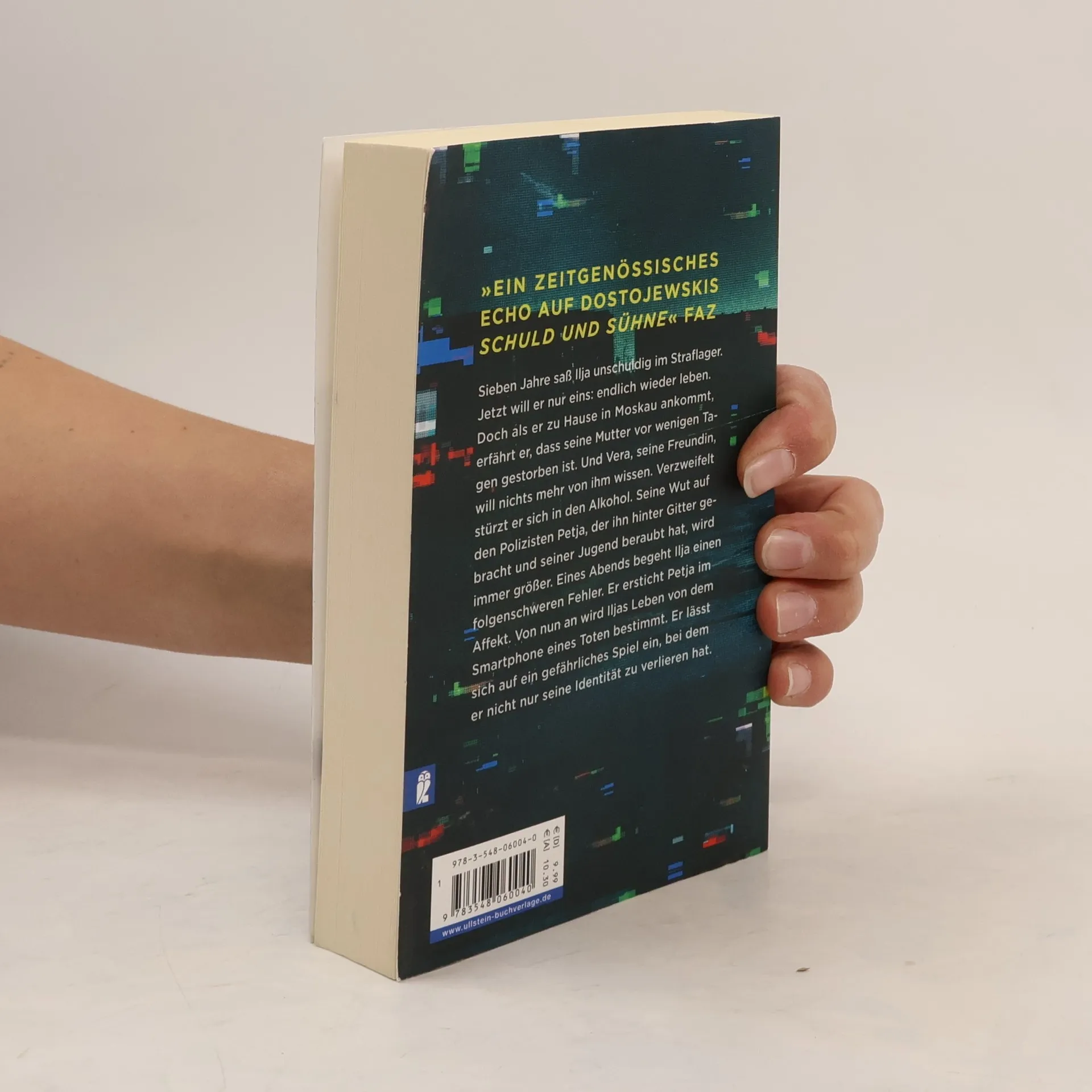 Die Geschichte einer sinnlosen Rache - aktueller denn je Moskau, im Herbst 2016: Ilja kommt nach sieben Jahren Straflager endlich nach Hause. Dort ist nichts mehr, wie es war. Seine Mutter stirbt wenige Tage vor seiner Rückkehr an einem Herzinfarkt und seine Freundin ist längst mit einem anderen zusammen. Ilja ertränkt seine Enttäuschung im Alkohol. Im Rausch der Verzweiflung sucht er jenen Fahnder auf, der ihn vor sieben Jahren zu Unrecht hinter Gitter brachte. Ilja ersticht ihn im Affekt. Als Ilja nach seiner Tat im Handy des verstorbenen Petja stöbert, stößt er auf verstörende Spuren aus dessen Vergangenheit. Und immer wieder erreichen ihn besorgte Nachrichten von Petjas Mutter und dessen schwangerer Freundin Nina. Ilja beginnt, ihnen an Petjas Stelle zu antworten, und seine Identität verschmilzt immer mehr mit der jenes Mannes, den er getötet hat. „Ein rasanter Krimi über politische Willkür, Rechtlosigkeit, Identitätsklau via Smartphone aus nur einer Perspektive erzählt.“ ZDF Morgenmagazin