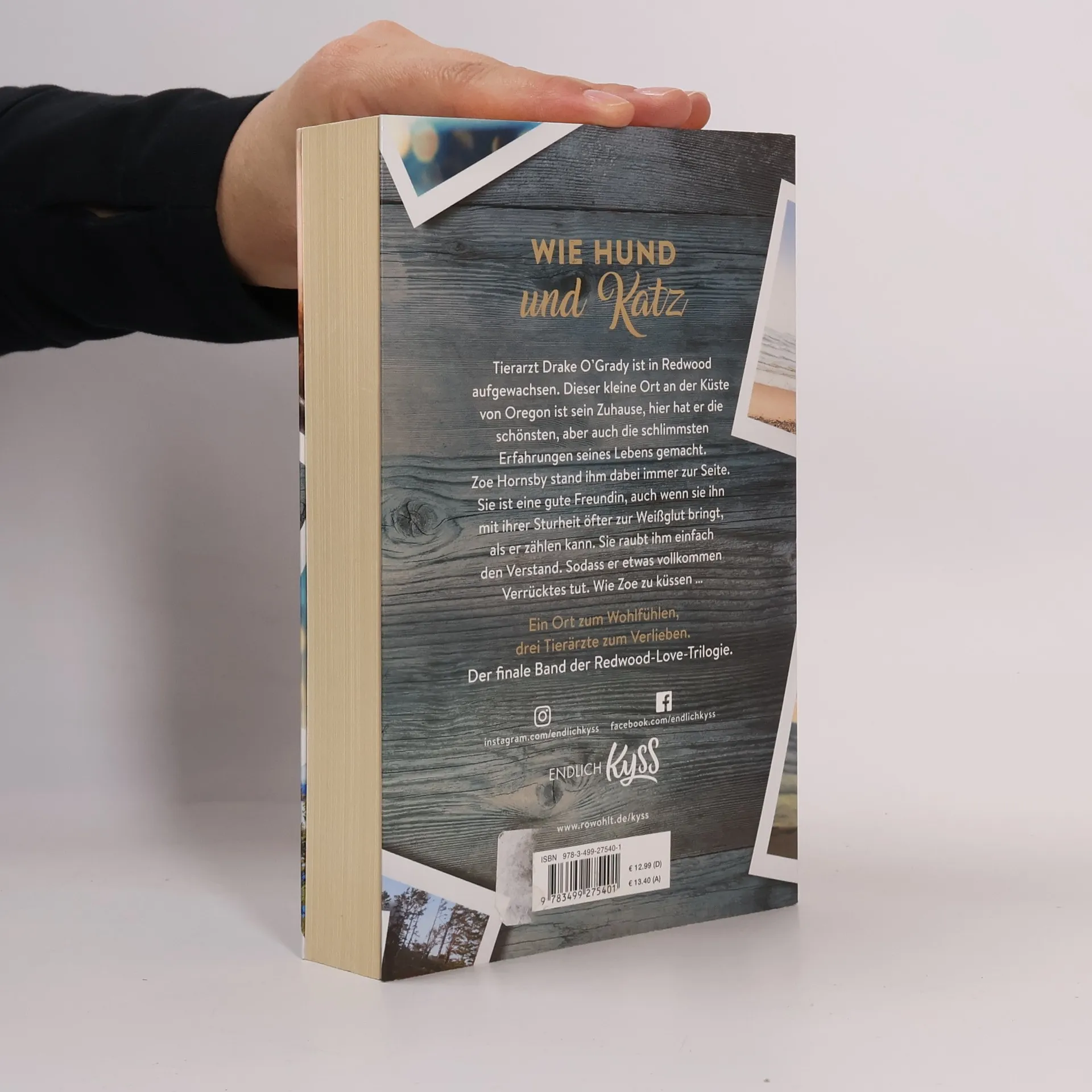 Wie Hund und Katz Tierarzt Drake O‘Grady ist in Redwood aufgewachsen. Dieser kleine Ort an der Küste von Oregon ist sein Zuhause, hier hat er die schönsten, aber auch die schlimmsten Erfahrungen seines Lebens gemacht. Zoe Hornsby stand ihm dabei immer zur Seite. Sie ist die wichtigste Person in seinem Leben, auch wenn sie ihn öfter zur Weißglut bringt, als er zählen kann. Sie raubt ihm einfach den Verstand. Sodass er etwas vollkommen Verrücktes tut. Wie Zoe zu küssen ... Ein Ort zum Wohlfühlen, drei Tierärzte zum Verlieben. Der finale Band der Redwood-Love-Trilogie