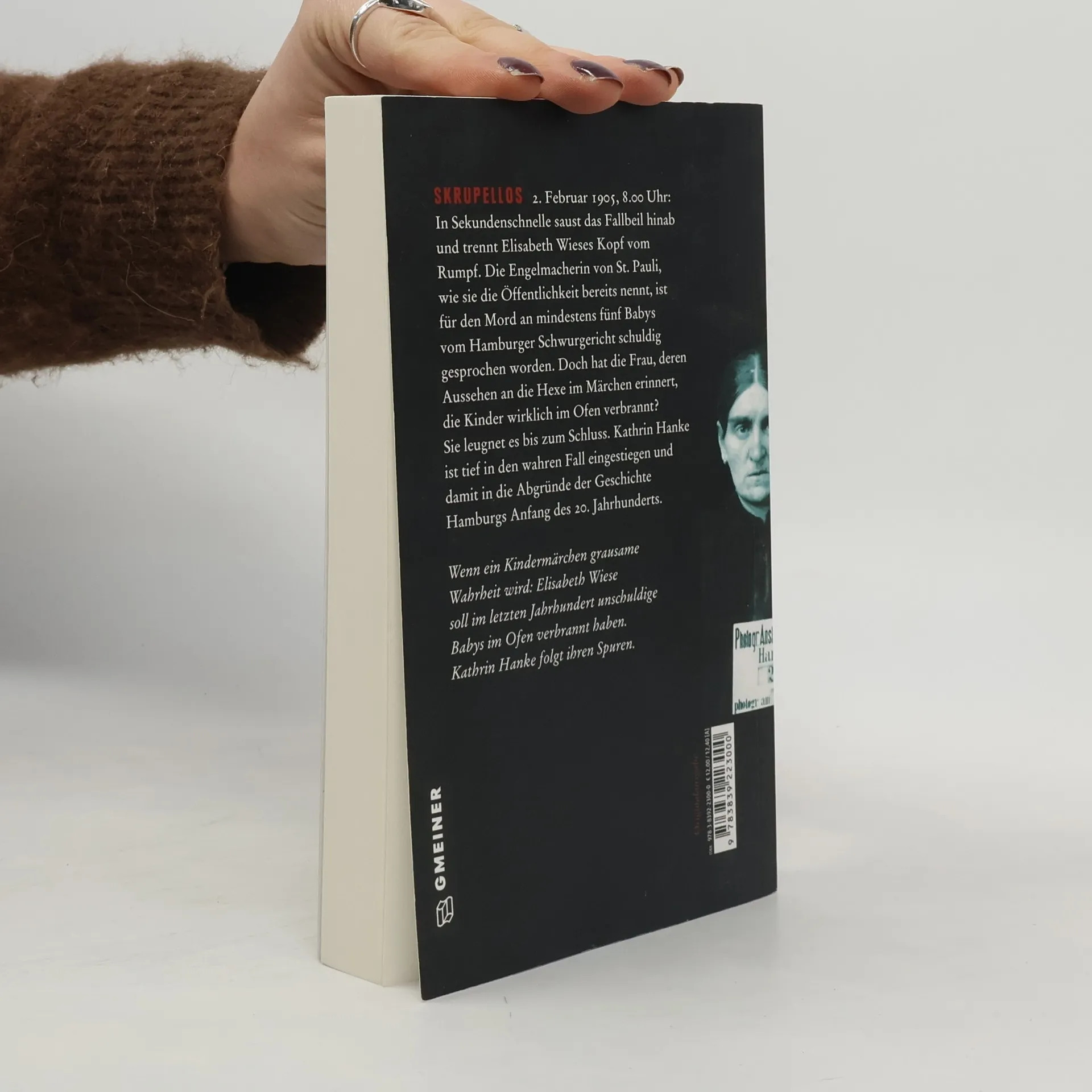 2. Februar 1905, 8.00 Uhr: In Sekundenschnelle saust das Fallbeil hinab und trennt Elisabeth Wieses Kopf vom Rumpf. Die Engelmacherin von St. Pauli, wie sie die Öffentlichkeit bereits nennt, ist für den Mord an mindestens fünf Babys vom Hamburger Schwurgericht schuldig gesprochen worden. Doch hat die Frau, deren Aussehen an die Hexe im Märchen erinnert, die Kinder wirklich im Ofen verbrannt? Sie leugnet es bis zum Schluss. Kathrin Hanke ist tief in den wahren Fall eingestiegen und damit in die Abgründe der Geschichte Hamburgs Anfang des 20. Jahrhunderts.