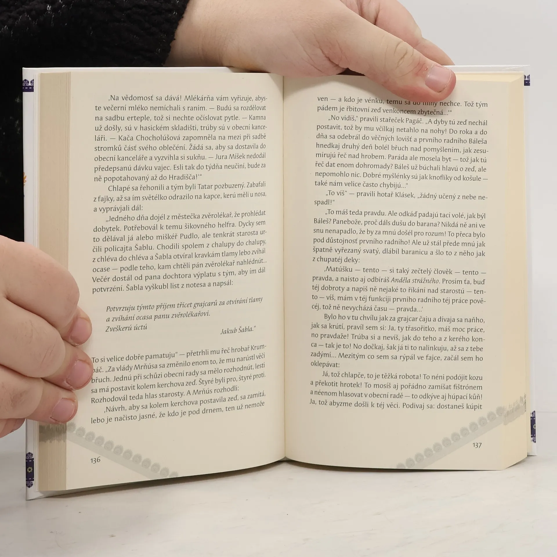 Jadrné a nenapodobitelné vyprávění Zdeňka Galušky plné ryzího humoru, které vychází z těch nejčistších a nejživelnějších pramenů, jež se prolínají v duši a v srdci prostých lidí z Moravského Slovácka. V podobě rázovitých slováckých strýců, rozložitých hubatých tetek, vesnických furiantů, šohajů i děvčic, bezzubých stařečků, šprýmařů, obecních policajtů a těch ostatních, kteří tak teple zalidňují každou slováckou dědinu. Srdečný, nefalšovaný a jedinečným způsobem podávaný humor zaujme nejednoho čtenáře a pohled na originální autorovy obrázky rozesměje i největšího škarohlída.