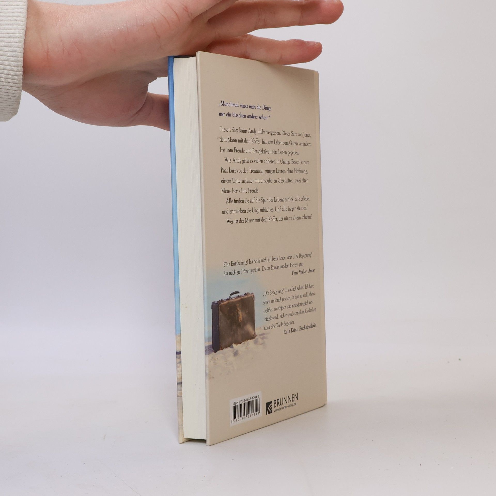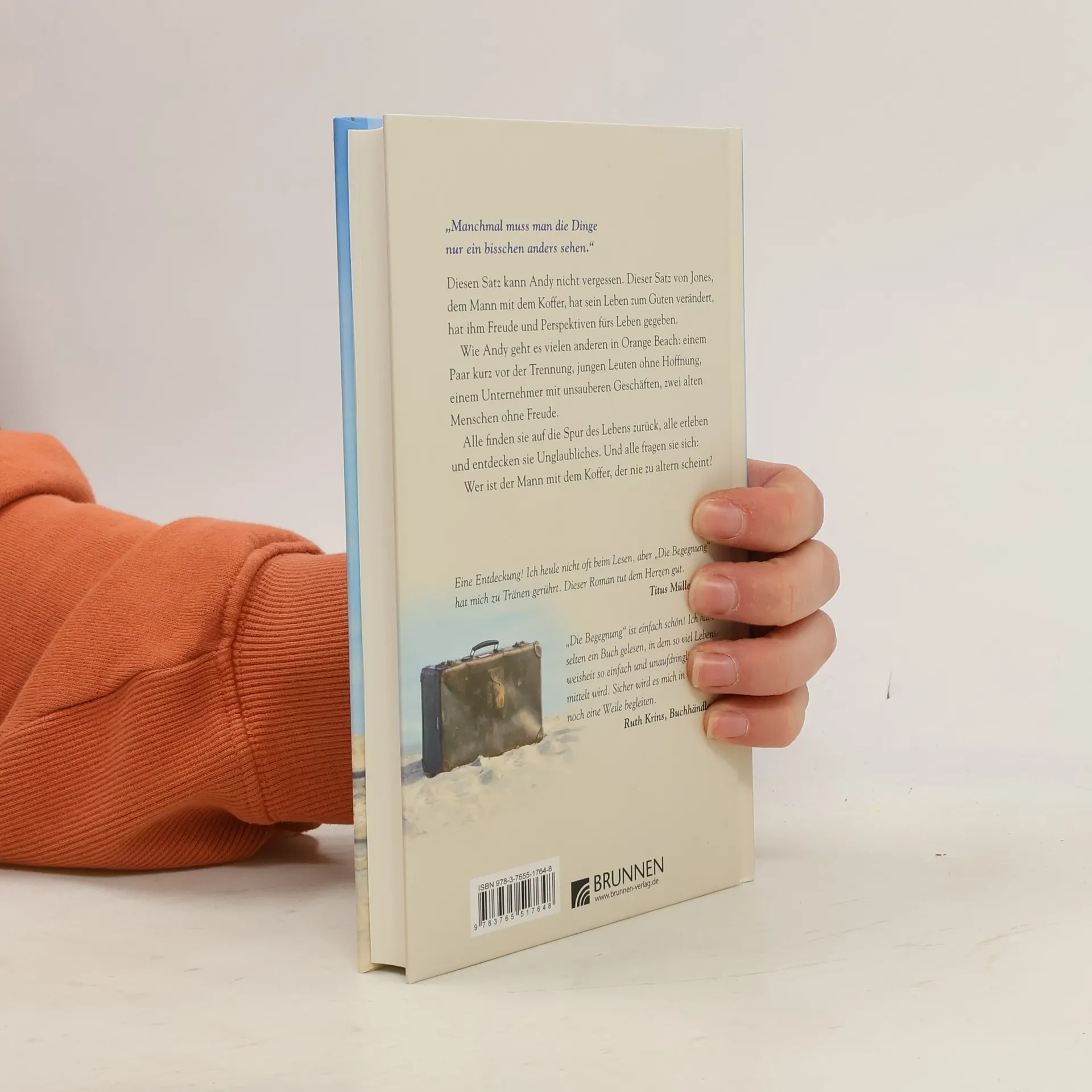 Der weißhaarige Jones taucht eines Tages bei dem jungen Andy auf, und später auch bei einigen anderen Frauen und Männern von Orange Beach, einer kleinen Stadt, in der es zugeht wie überall: Ehen kurz vor der Scheidung, junge Leute ohne Hoffnung, Geschäftsleute mit unsauberen Geschäften, alte Menschen ohne Freude. Durch Jones entdeckt einer nach dem anderen etwas verloren Geglaubtes: eine neue Perspektive. „Manchmal muss man die Dinge nur ein bisschen anders sehen“, fordert Jones resignierten Andy auf und hilft ihm zu sehen, was er bislang übersehen hat. Und der junge Mann, der früher unter der Brücke schlief, entdeckt Unglaubliches, er erlebt genauso Unglaubliches wie alle anderen auch. Irgendwann treffen sich alle und fragen sich: Wer ist der Mann mit dem Koffer, die nie zu altern scheint?