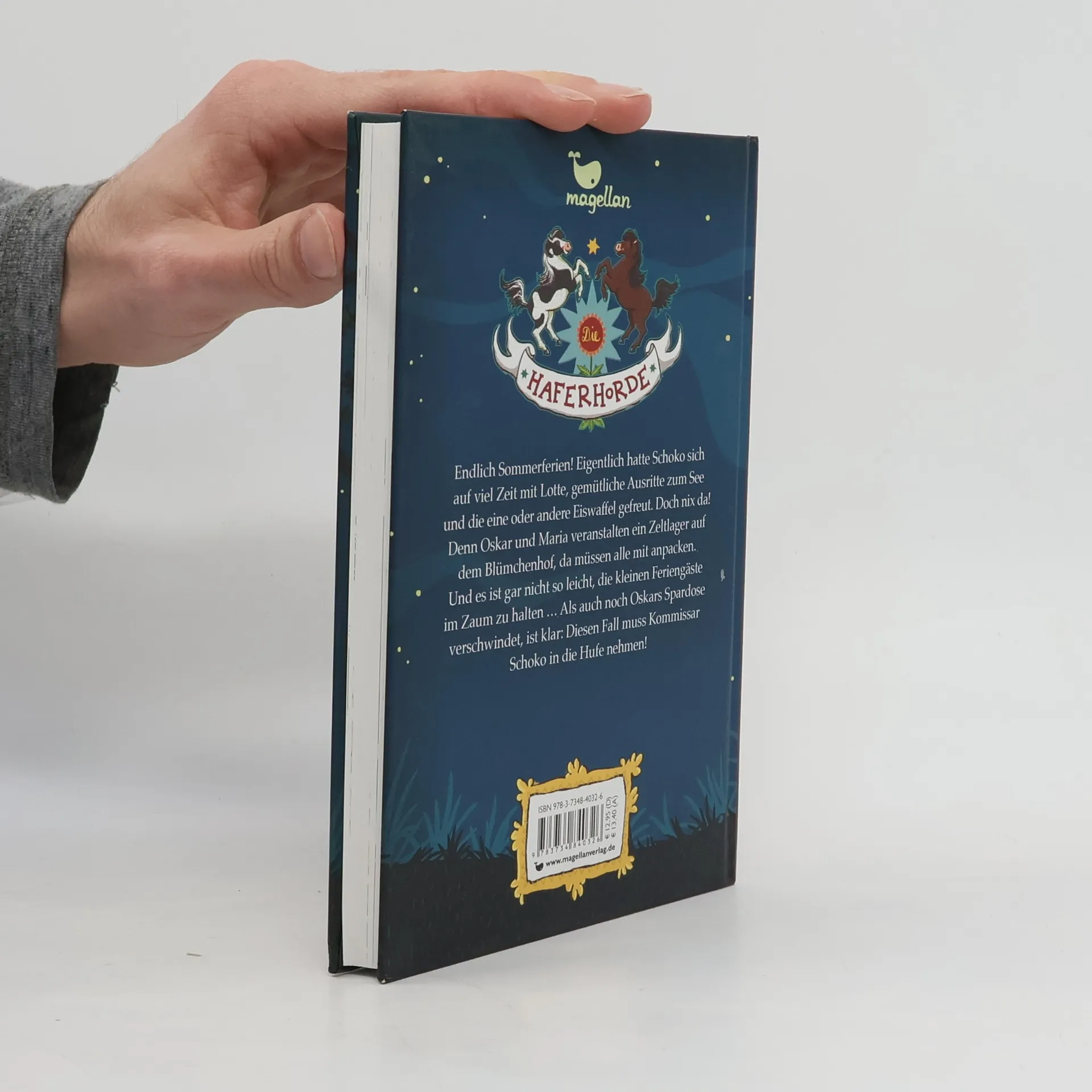 Endlich Sommerferien! Schoko freut sich schon auf ganz viel Zeit mit Lotte, gemütliche Ausritte zum See und die eine oder andere Eiswaffel bei der Ladenfrau. Doch nix da! Oskar und Maria wollen ein Zeltlager auf dem Blümchenhof veranstalten, und da die Chefin ausgerechnet zur gleichen Zeit mit Finchen zu einer Zuchtschau reist, müssen alle mit anpacken. Denn es ist gar nicht so leicht, fünf kleine Feriengäste im Zaum zu halten … Als dann auch noch Oskars Spardose mit dem Zeltlager-Budget verschwindet, ist die Aufregung groß: War ein Dieb auf dem Blümchenhof? Oder hat etwa eines der Kinder etwas damit zu tun? Klar, dass Kommissar Schoko den Fall in die Hufe nimmt!