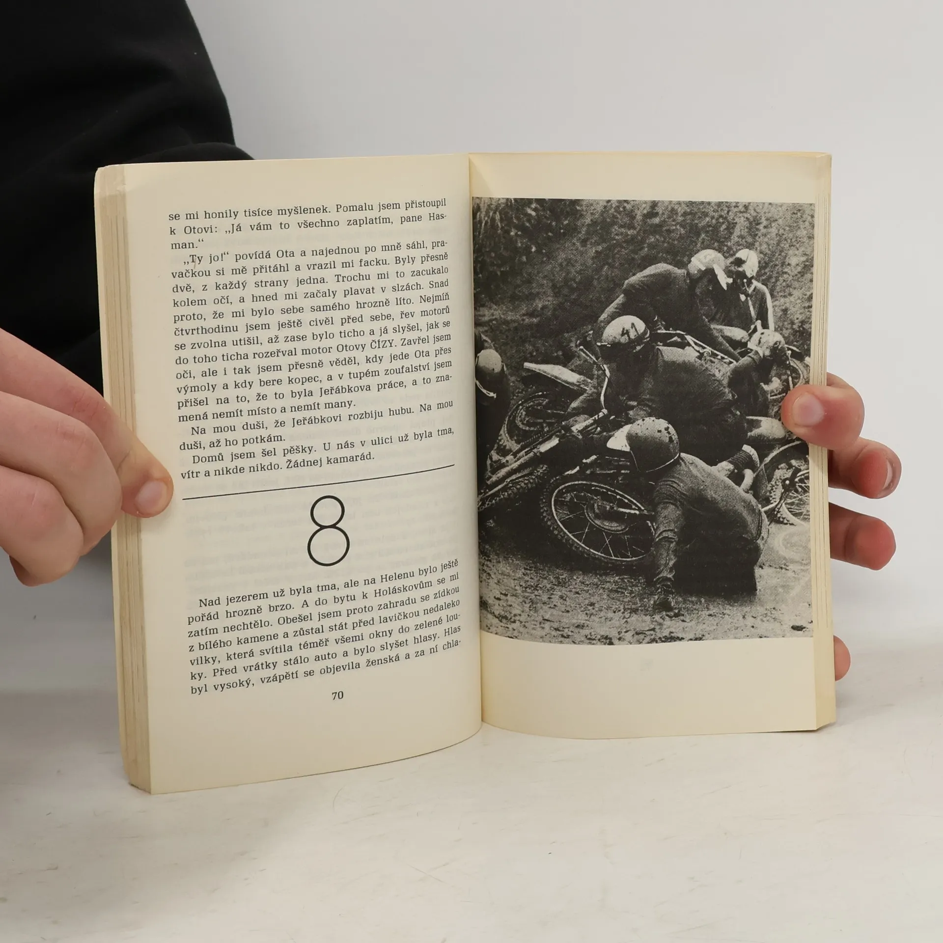 Román z prostředí motocyklového sportu zachycuje příběh mladého závodníka, který za několik dní pojede motokrosový závod. Autor zde na pozadí dokonale zvládnuté problematiky dnešní mládeže líčí mezní situaci neúspěšného maturanta, jenž po neúspěchu milostného vztahu má v závoděposlední možnost získat ztracenou důvěru v sebe.