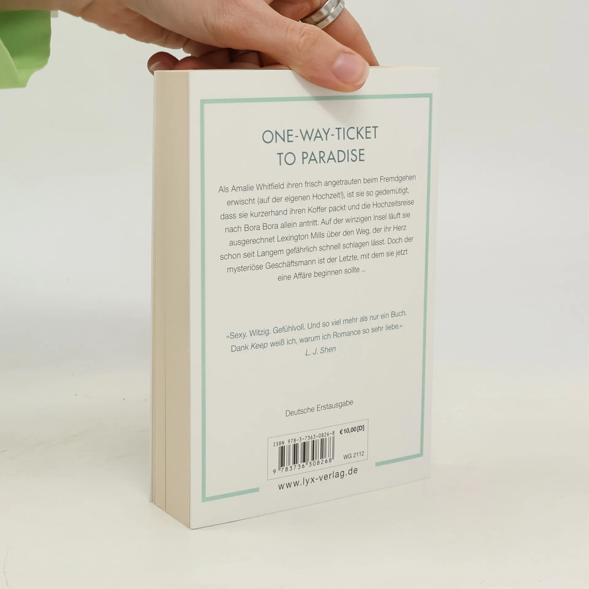 One-Way-Ticket to Paradise Als Amalie Whitfield ihren Fast-Ehemann beim Fremdgehen erwischt (auf der eigenen Hochzeit!), ist sie so gedemütigt, dass sie kurzerhand ihren Koffer packt und die Hochzeitsreise nach Bora Bora allein antritt. Auf der winzigen Insel läuft sie ausgerechnet Lexington Mills über den Weg, der ihr Herz schon seit Langem gefährlich schnell schlagen lässt. Doch der mysteriöse Geschäftsmann ist der Letzte, mit dem sie jetzt eine Affäre beginnen sollte ...