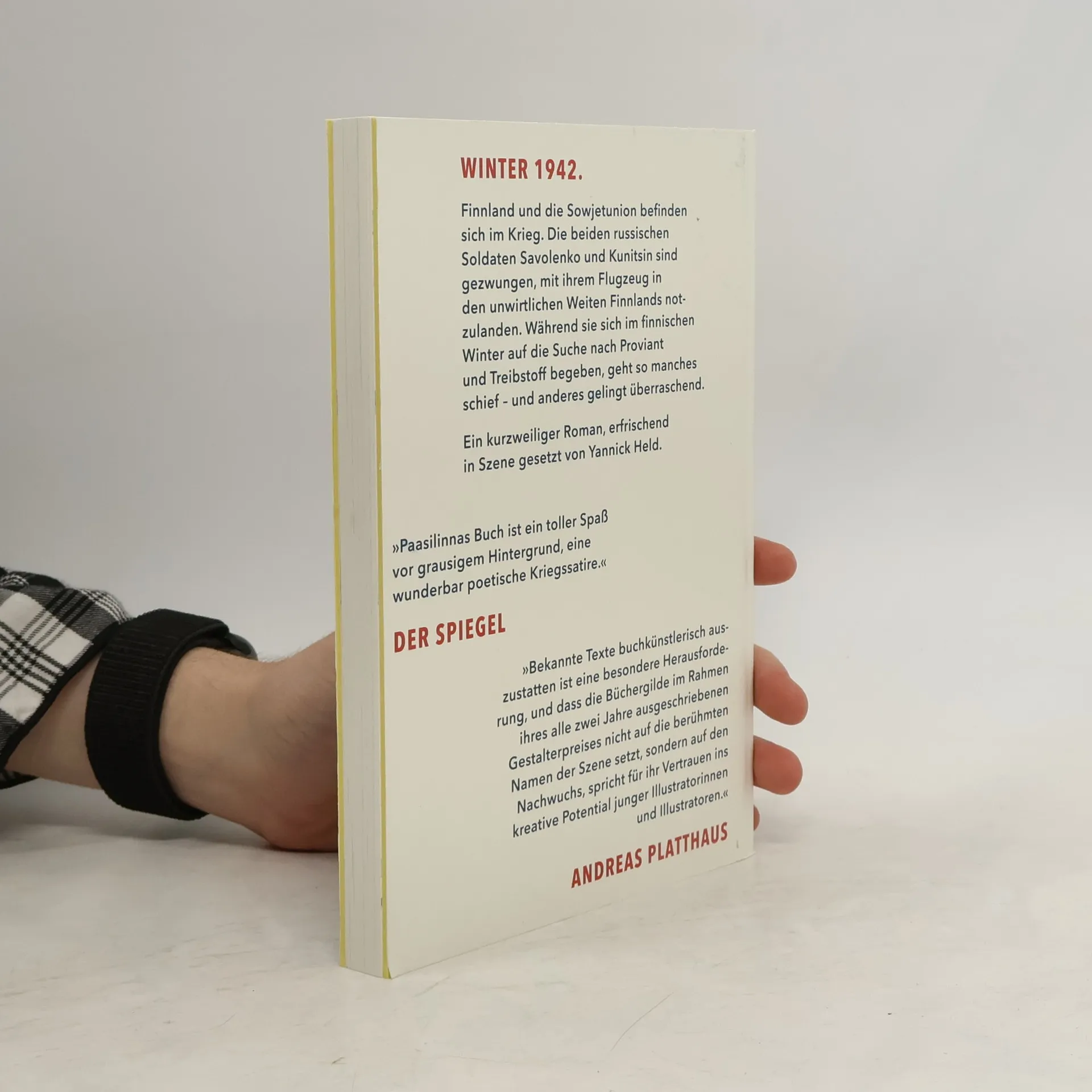 Winter 1942. Finnland und die Sowjetunion befinden sich im Krieg. Zwei sowjetische Soldaten, Savolenko und Kunitsjin, werden in den finnischen Wäldern ausgesetzt. Ihr Spionage-Auftrag, geplant als Heldeneinsatz im Feindesland, entwickelt sich jedoch zu einem skurrilen Abenteuer. Auf ihrem Marsch durch die Winterlandschaft haben sie überraschende Begegnungen: mit einer verführerischen Apothekerin, einem trinkfreudigen Bauern und einem müden Militärpferd. Viel Stoff für einen kurzweiligen Roman aus Finnland!