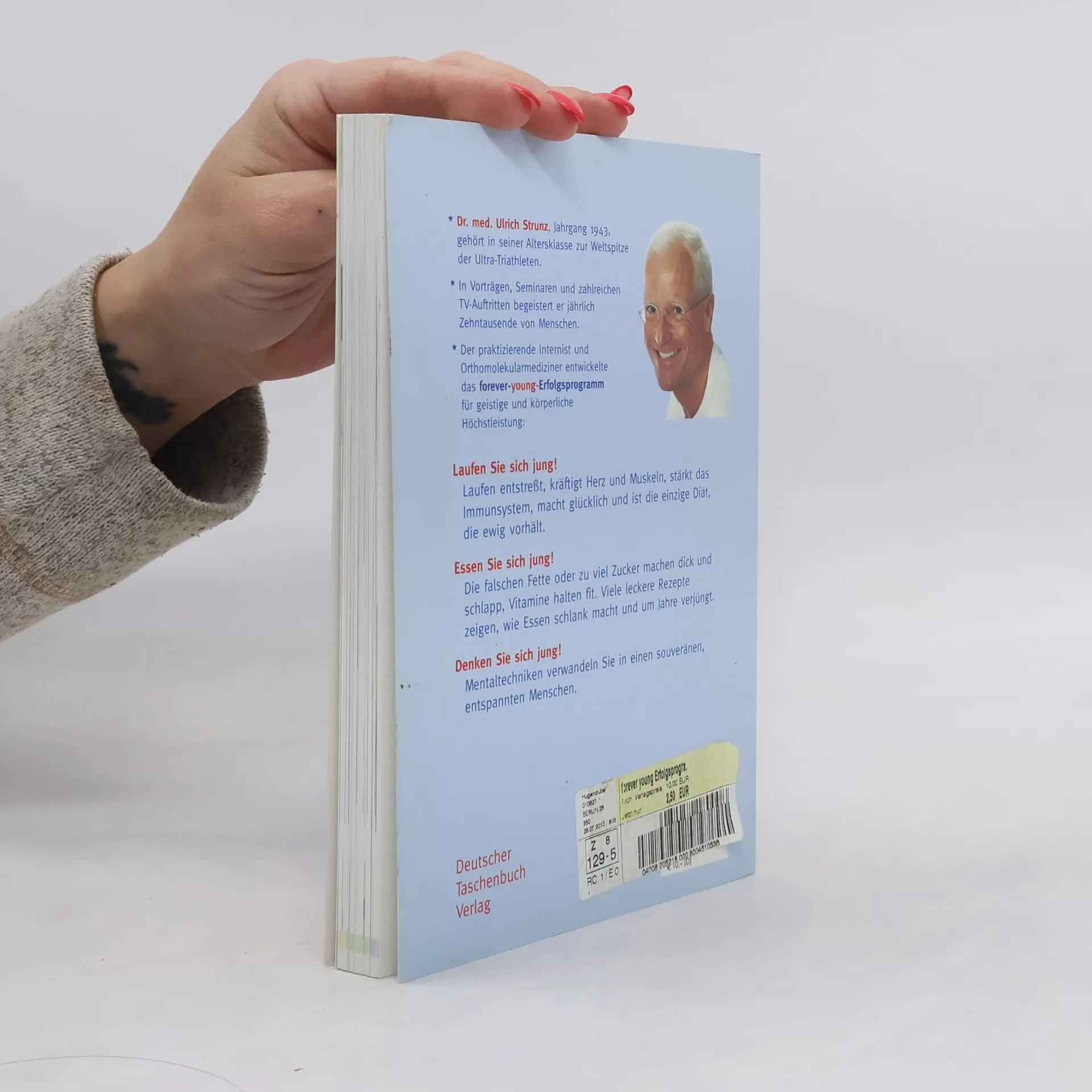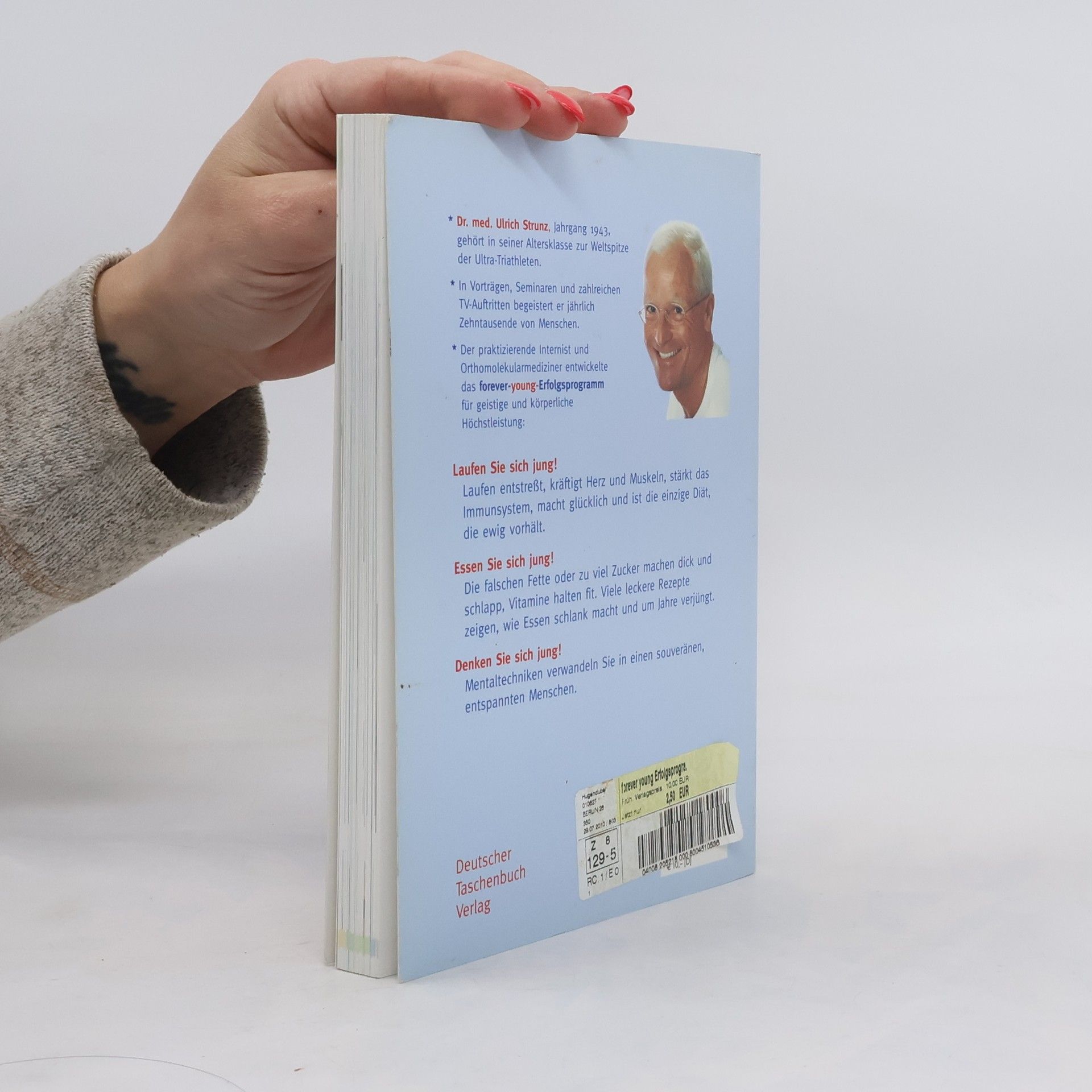 »Dieser Mann ändert Ihr Leben.« News Der Fitness-Bestseller - jetzt endlich im Taschenbuch! Jung aussehen, schnell denken, fit bleiben: Dr. med. Ulrich Strunz zeigt, wie Sie Ihre biologische Uhr zurückdrehen können. Werden Sie spielend körperlich und geistig topfit! Das Forever-young-Programm für körperliche und geistige Höchstleistung ruht auf drei Säulen: 1. Laufen Sie sich jung! Laufen ist eine Wunderpille: es entstresst, kräftigt Herz und Muskeln, stärkt das Immunsystem, macht glücklich und ist die einzige Diät, die ewig hält. 2. Essen Sie sich jung! Die falschen Fette oder zu viel Zucker machen dick und und schlapp, Vitamine halten fit. Viel leckere Rezepten zeigen, wie Essen schlank macht und um Jahre verjüngt. 3. Denken Sie sich jung! Mentaltechniken verwandeln Sie in einen souveränen, entspannten Menschen, der Ruhe und Gelassenheit ausstrahlt.