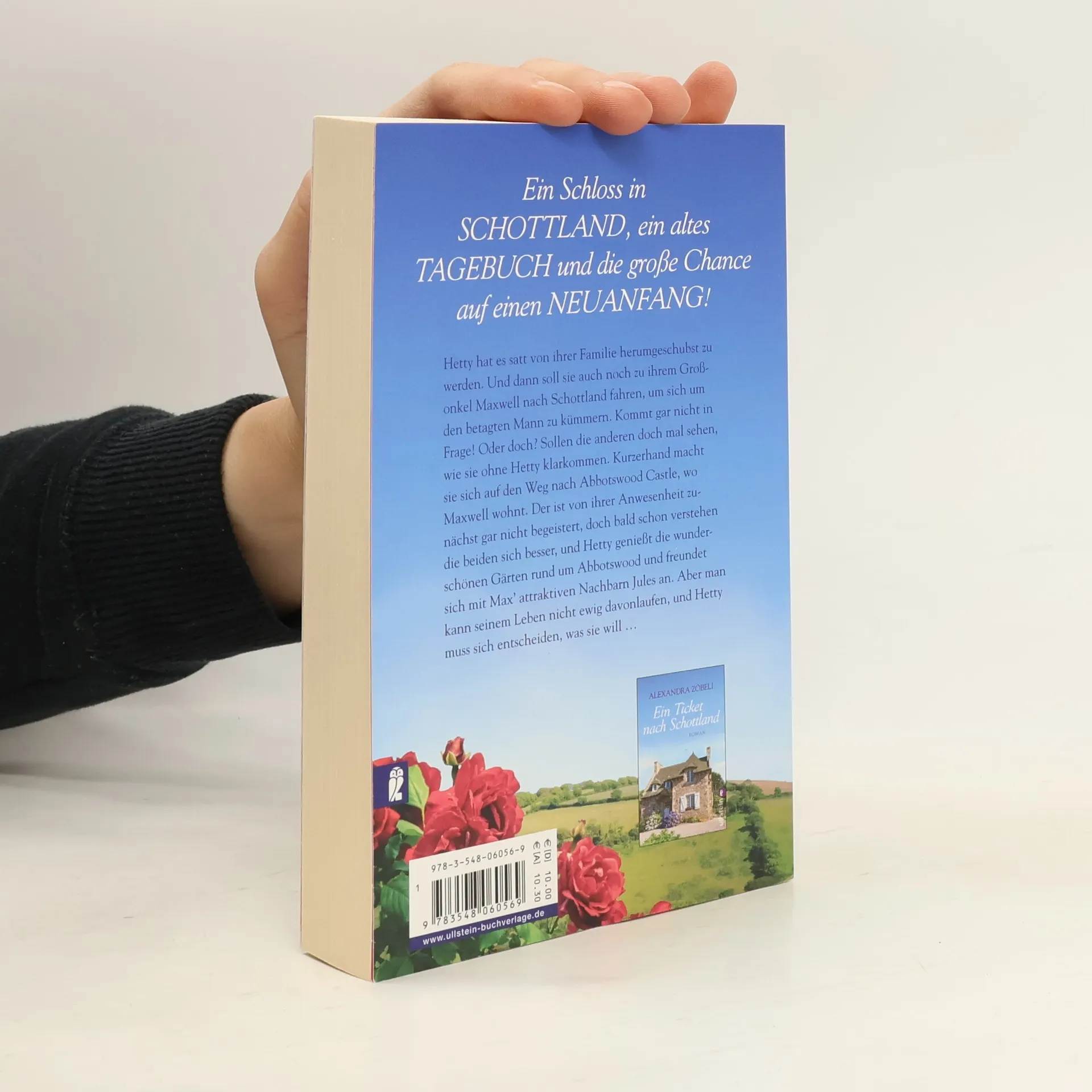 Hetty ist frustriert. Ihre Familie scheint in ihr nur die Putzfrau und Köchin zu sehen. Nicht mal an ihrem Geburtstag nimmt man sich Zeit für sie. Da muss sich was ändern. Sie folgt dem Rat ihrer Freundin Pippa, lässt ihren Mann und die achtzehnjährige Tochter in London zurück und fährt nach Schottland, zu ihrem kranken Großonkel in Abbotswood Castle. Auf der Reise zu sich selbst, jagt sie mit dem attraktiven Schreiner aus der Nachbarschaft einem Tagebuch hinterher, um dem schusseligen Schlossgespenst Rose zu helfen, endlich zu ihrem Liebsten zu kommen. Ihr eigenes Herz geht auf dieser Suche hoffnungslos verloren ... Von Alexandra Zöbeli sind bereits erschienen: Ein Bett in Cornwall Ein Ticket nach Schottland Die Rosen von Abbotswood Castle Der Himmel über den Black Mountains Der Pub der guten Hoffnung Die Sterne über den Black Mountains
