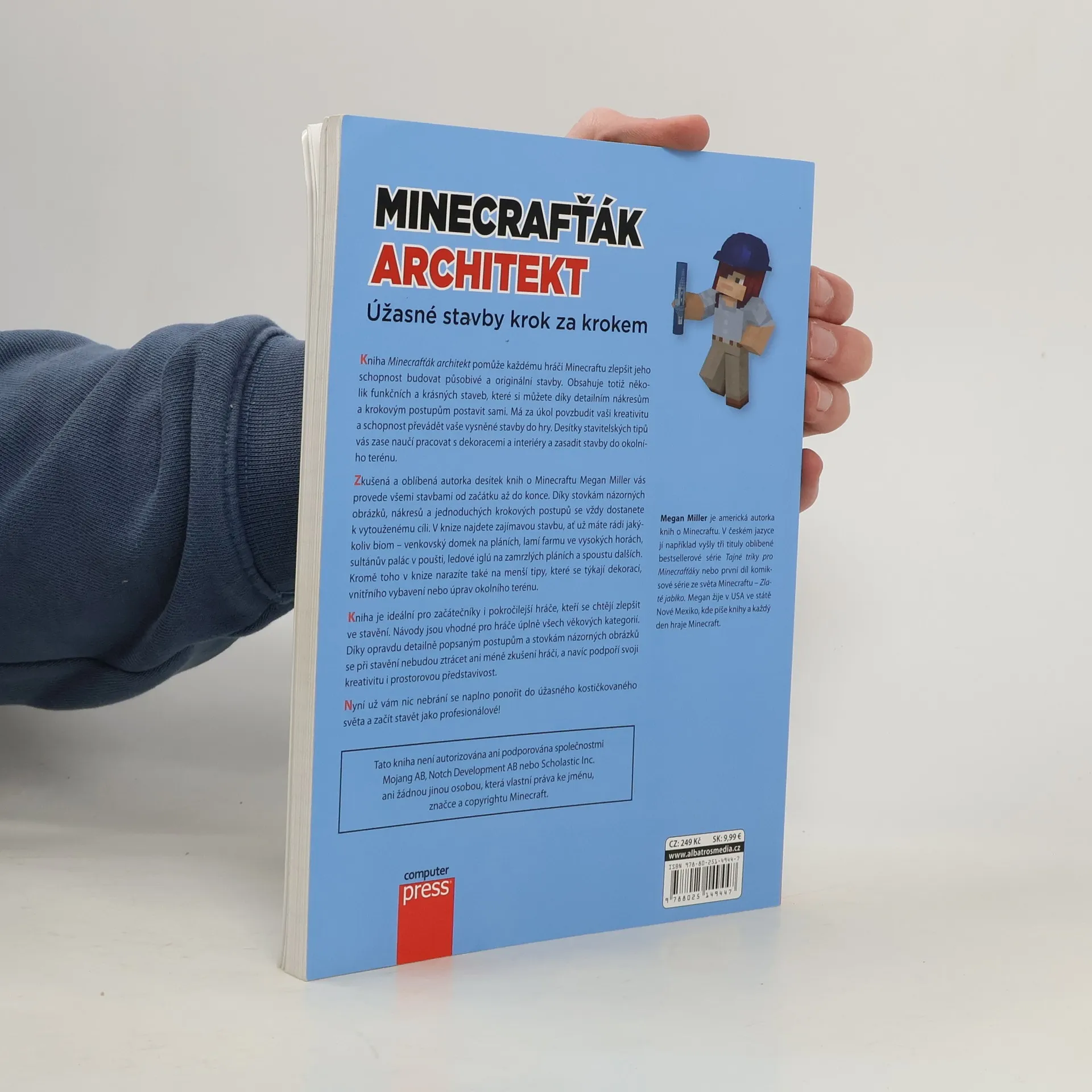 Ponořte se naplno do úžasného světa Minecraftu a stavějte jako profesionálové Kniha Minecrafťák architekt pomůže každému hráči Minecraftu zlepšit jeho schopnost budovat působivé a originální stavby. Obsahuje totiž několik funkčních a krásných staveb, které si můžete díky detailním nákresům a krokovým postupům postavit sami. Má za úkol povzbudit vaši kreativitu a schopnost převádět vaše vysněné stavby do hry. Desítky stavitelských tipů vás zase naučí pracovat s dekoracemi a interiéry a zasadit stavby do okolního terénu.