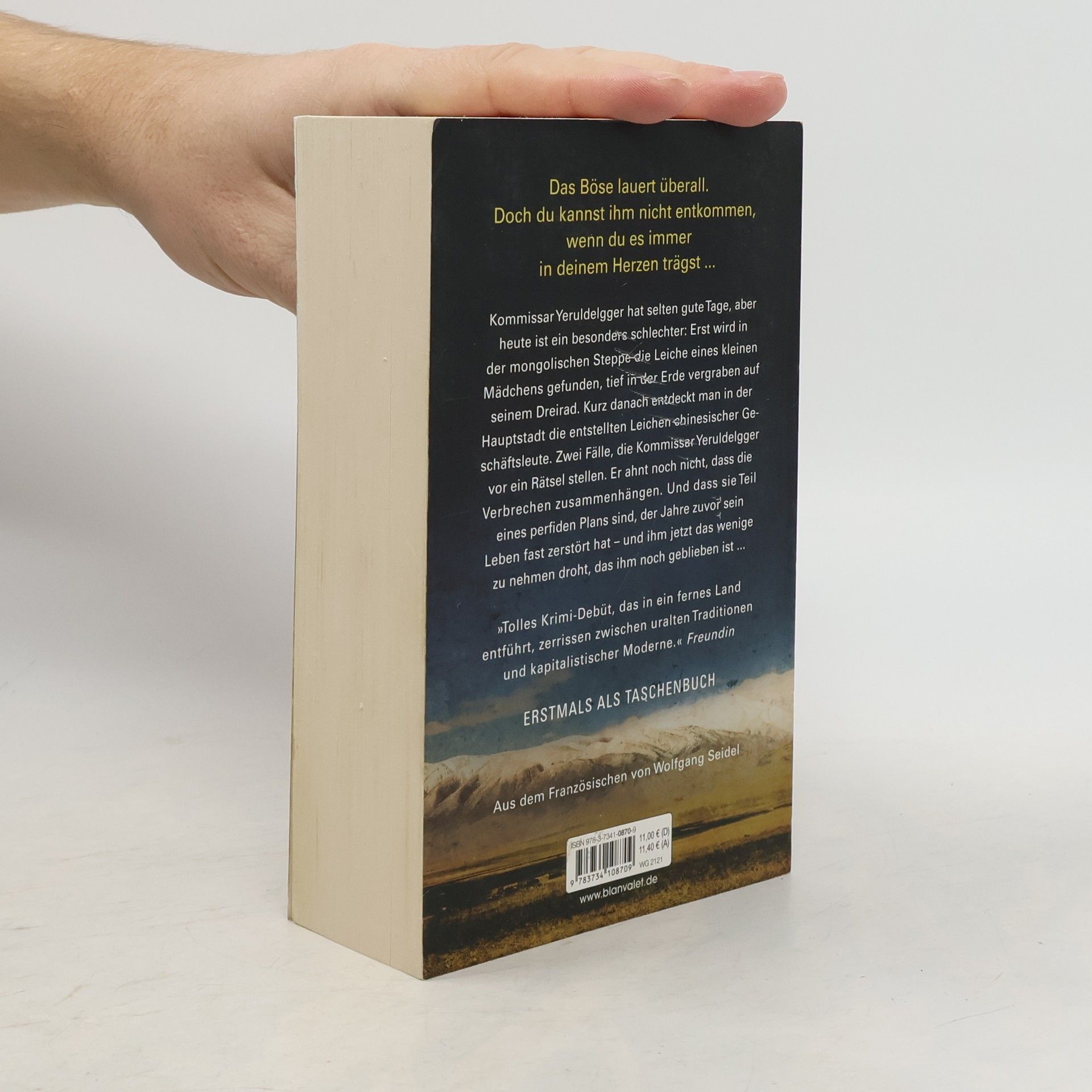 Ein Mädchen, lebendig begraben in der mongolischen Steppe. Grausame Morde in der Hauptstadt. Und ein Ermittler, der von seiner düsteren Vergangenheit eingeholt wird ... Kommissar Yeruldelgger hat selten gute Tage, aber heute ist ein besonders schlechter: Erst wird in der mongolischen Steppe die Leiche eines kleinen Mädchens gefunden, tief in der Erde vergraben auf seinem Dreirad. Kurz danach entdeckt man in der Hauptstadt die entstellten Leichen chinesischer Geschäftsleute. Zwei Fälle, die Kommissar Yeruldelgger vor ein Rätsel stellen. Er ahnt noch nicht, dass die Verbrechen zusammenhängen. Und dass sie Teil eines perfiden Plans sind, der Jahre zuvor sein Leben fast zerstört hat – und ihm jetzt das wenige zu nehmen droht, das ihm noch geblieben ist ... Die unabhängig voneinander lesbaren Romane der Yeruldelgger-Reihe bei Blanvalet: 1. Der Mongole. Das Grab in der Steppe 2. Der Mongole. Kälter als der Tod 3. Der Mongole. Tod eines Nomaden