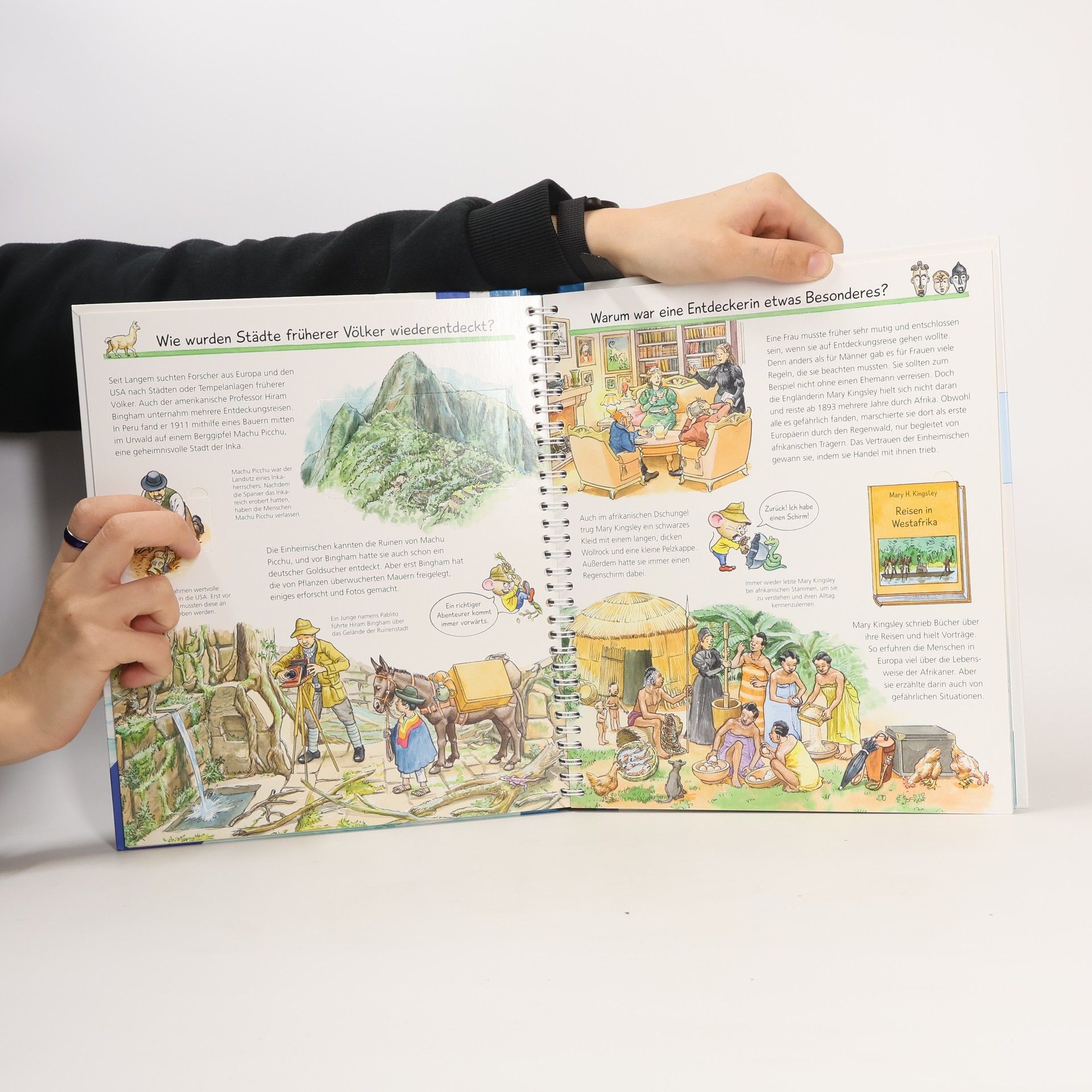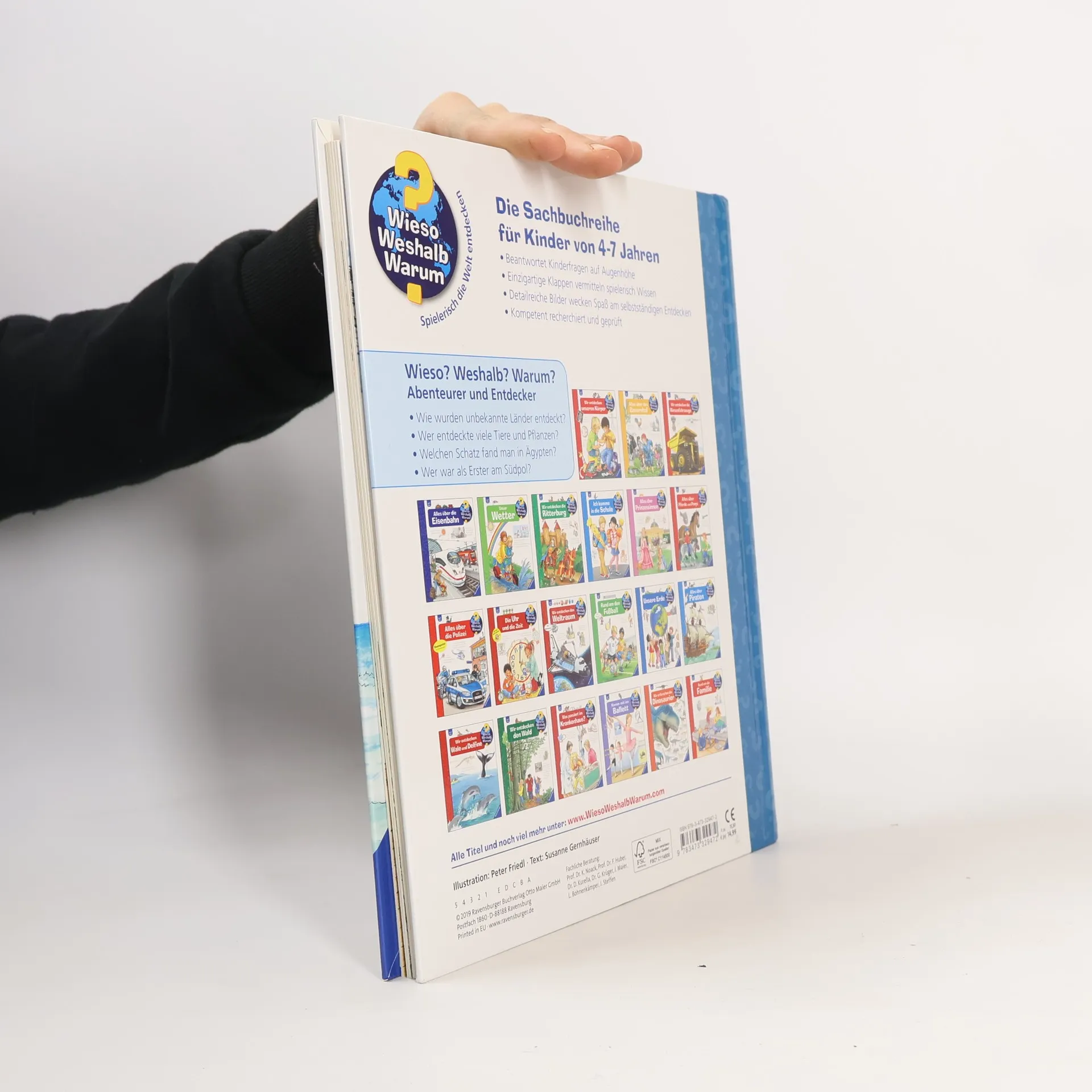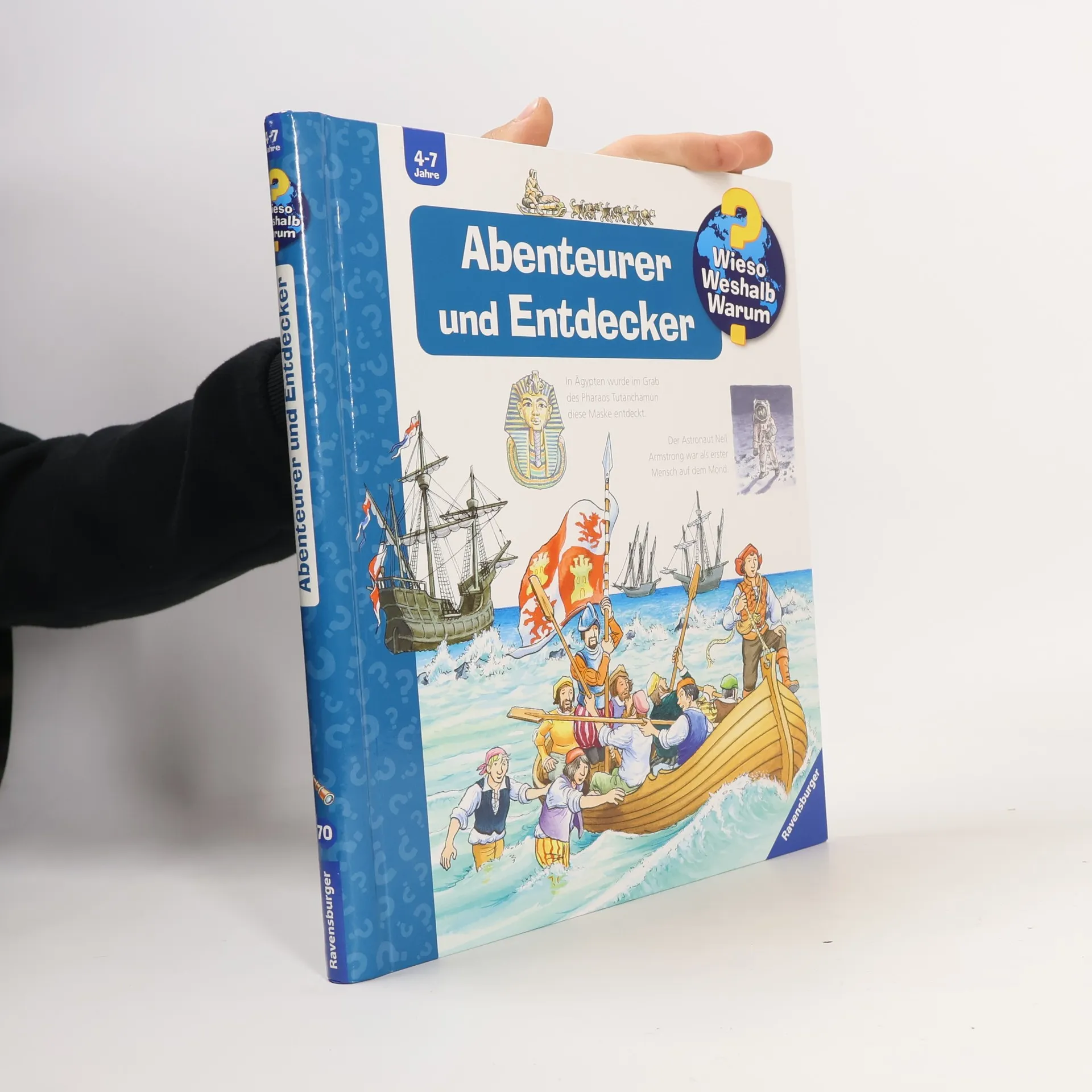 Mit diesem Buch reisen Kinder mit den Wikingern und Kolumbus nach Amerika, mit Humboldt entdecken sie Tiere in Südamerika, mit Mary Kingsley den afrikanischen Dschungel und mit Carter Schätze in der Grabkammer Tutanchamuns. Und wer waren die ersten Menschen am Südpol, auf dem Mount Everest und auf dem Mond? Zahlreiche Klappen laden zu abenteuerlichen Entdeckungen ein. Kurze Sachtexte erzählen die spannenden Hintergrundgeschichten. Wieso? Weshalb? Warum? Die Sachbuchreihe für Kinder von 4–7 Jahren Jeden Tag entdecken Kinder etwas Neues – da kommen viele Fragen auf. Warum sind die Dinosaurier ausgestorben? Wo ist die Sonne in der Nacht? Wozu brauchen wir das Blut? Die beliebte Sachbuchreihe Wieso? Weshalb? Warum? gibt Kindern Antworten auf Augenhöhe. Dabei werden die unterschiedlichsten Themen aus der Alltags- und Interessenswelt der Kinder altersgerecht und mit viel Liebe zum Detail unter die Lupe genommen. Detailreiche Bilder, verständliche Sachtexte und überraschende Klappen, die Bewegungen oder Abläufe veranschaulichen und hinter die Dinge blicken lassen, ermöglichen Kindern, sich ihre Themen selbst zu erschließen. Der Spaß am eigenhändigen Entdecken, die liebevolle Umsetzung und die qualitativ hochwertige Ausstattung garantieren langanhaltende Freude an jedem einzelnen Buch.