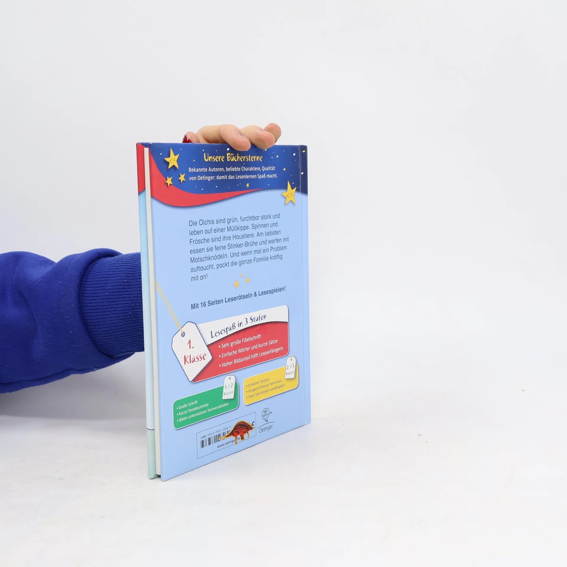 Schleime-Schlamm-und-Käsefuß! Olchi-Leckereien fürs erste Lesen Olchis sind Feinschmecker. Am liebsten essen sie Olchi-Mamas Stinker-Brühe mit Fischgräten-Nachtisch. Doch wo sind die köstlichen Gräten geblieben? Die ganze Olchi-Familie macht sich auf die Suche. 16 Seiten Leserätsel und Lesespiele im Anhang. Lesen lernen mit „Büchersterne“ für die 1. Klasse: sehr große Fibelschrift, einfache Wörter, kurze Sätze und ein hoher Bildanteil für die jüngsten Leseanfänger. Dazu 16 Seiten Leserätsel und Lesespiele im Anhang.