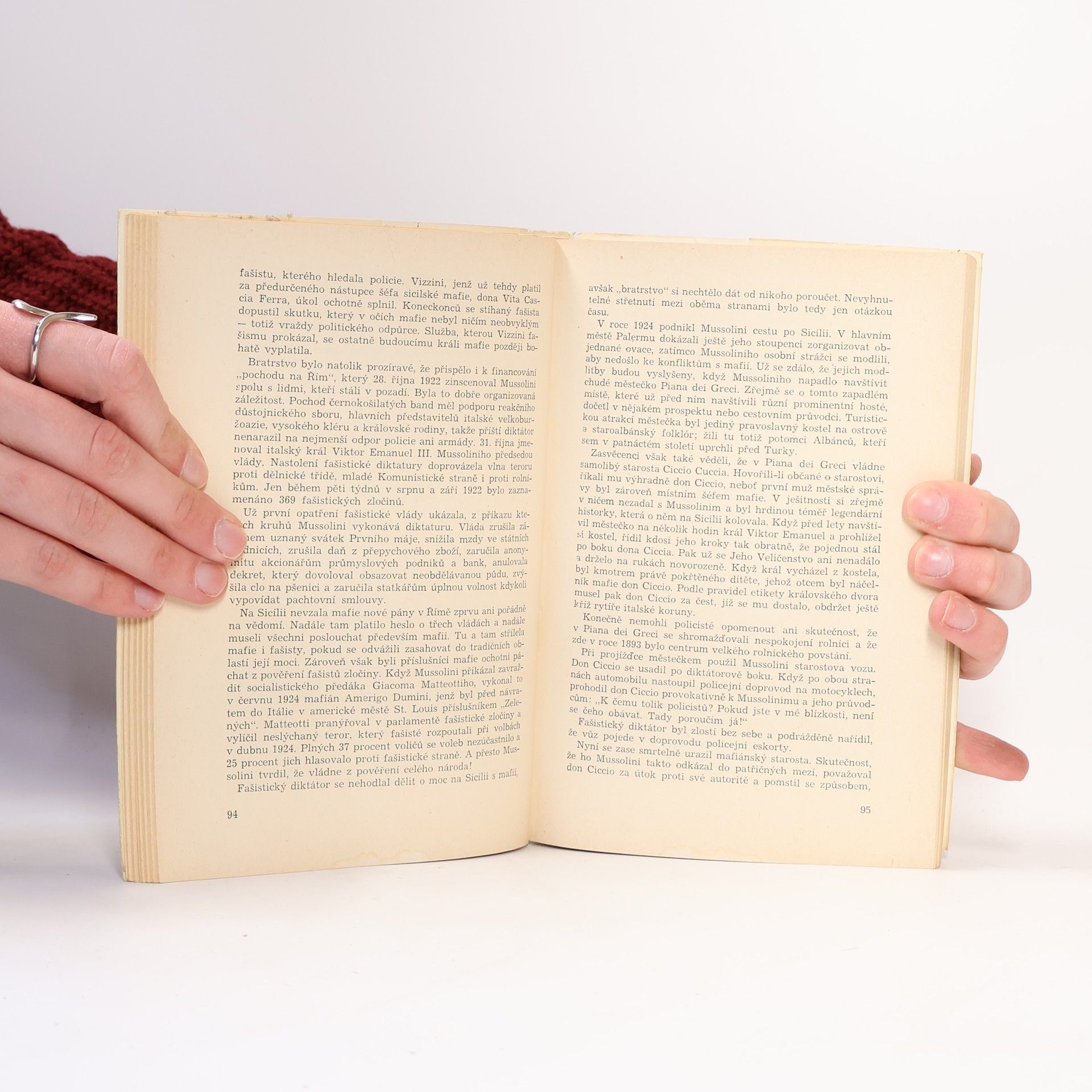 Na konkrétních příkladech popisuje materiálově bohatá knížka činnost gangsterského syndikátu "cosa nostra", který stojí v pozadí organizovaného zločinu ve Spojených státech. Líčí vznik a vývoj americké mafie, nástup nového vedení této vlivné zločinecké organizace a její spojení samerickou zpravodajskou službou v době příprav vylodění anglo-amerických vojsk na Sicílii. Odhaluje obludné metody mafie a její účast v nesčetných vyděračských a korupčních aférách, vraždách, obchodě s narkotiky apod.