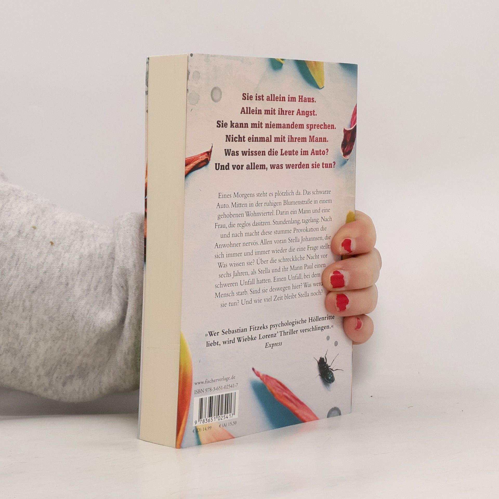 Sie ist allein im Haus. Allein mit ihrer Angst. Sie kann mit niemandem sprechen. Nicht einmal mit ihrem Mann. Was wissen die Leute im Auto? Und vor allem, was werden sie tun? Eines Morgens steht es plötzlich da. Das schwarze Auto. Mitten in der ruhigen Blumenstraße in einem gehobenen Wohnviertel. Darin ein Mann und eine Frau, die reglos dasitzen. Stundenlang, tagelang. Nach und nach macht diese stumme Provokation die Anwohner nervös. Allen voran Stella Johannsen, die sich immer und immer wieder die eine Frage stellt: Was wissen sie? Über die schreckliche Nacht vor sechs Jahren, als Stella und ihr Mann Paul einen schweren Unfall hatten. Einen Unfall, bei dem ein Mensch starb. Sind sie deswegen hier? Was werden sie tun? Und wie viel Zeit bleibt Stella noch? »Ich habe mich völlig in dieser Geschichte verloren und wusste irgendwann nicht mehr, wo oben und unten ist. Wahnsinnig spannend. Unbedingt lesen!« Melanie Raabe